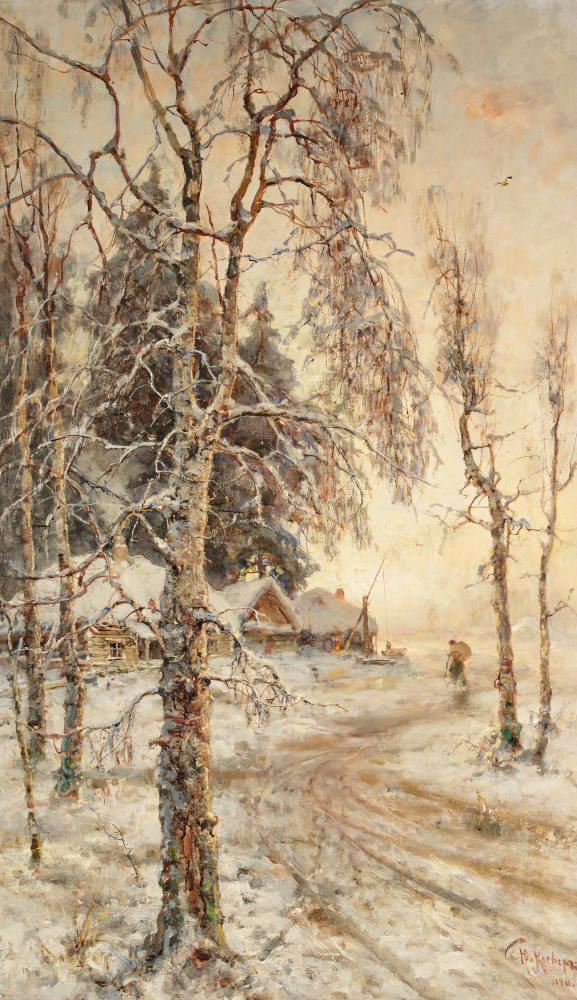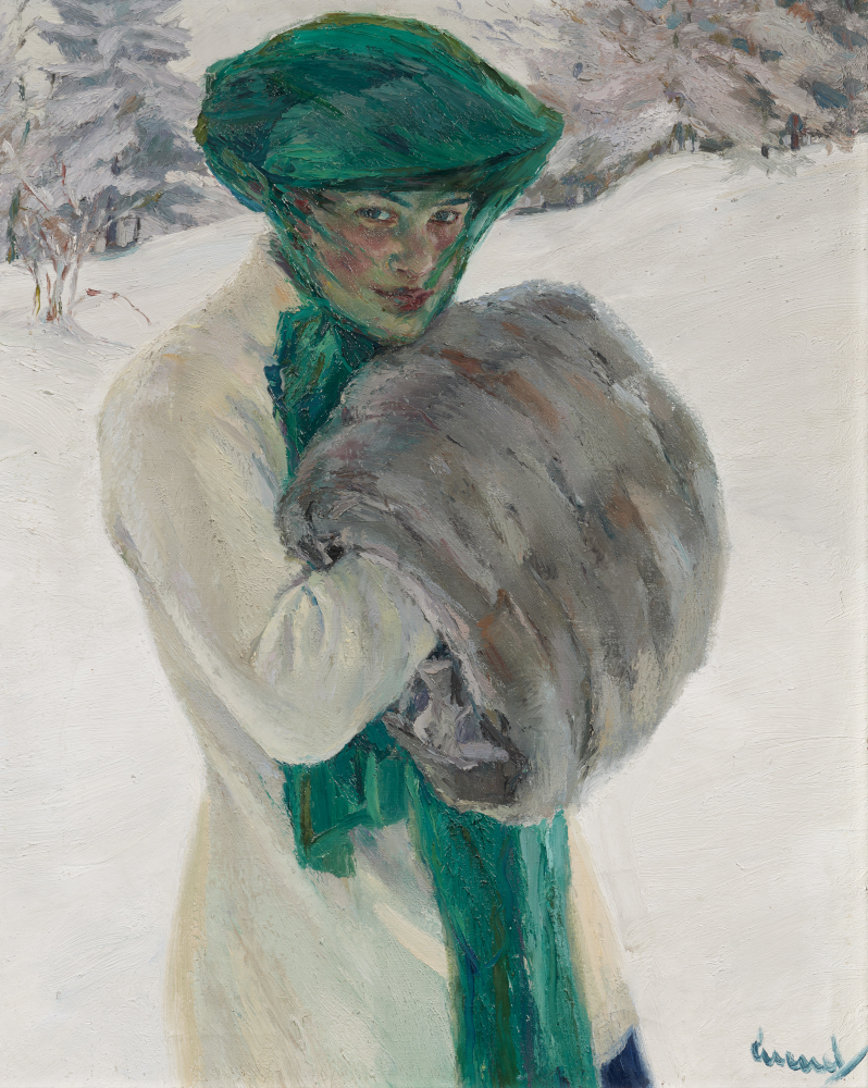"Der graue Muff" - Dame im Winterwald | Um 1915/1916 | Öl auf Leinwand | 80 x 65 cm