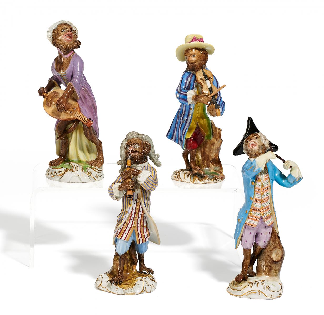 Wohl von Johann Joachim Kaendler erschaffen und unter Mitwirkung Peter Reinickes im Jahr 1765/66 neu überarbeitet, gelten die Affen als der »skurrilste Klassiker des Meissener Barock« (www.meissen.com).