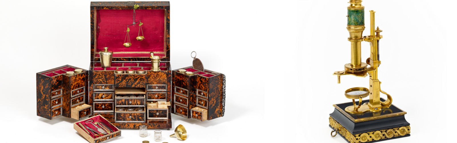 Erst durch Humanismus und Aufklärung erfolgte der Wandel zum Pharmaziewissen der Moderne. Neue und weiterentwickelte Gerätschaften ließen immer genauere Forschungen zu und schafften so die Grundlage der modernen Arzneimittelkunde. Die in diesem Katalog angebotenen Objekte bieten einen beeindruckenden Querschnitt dieser geschichtlichen Entwicklung vom 14. bis ins 19. Jahrhundert. Sie wurden mit musealem Anspruch ausgewählt. Der Aufbau der Sammlung, sowie der Ankauf der Objekte lag zum größten Teil in den Händen des renommierten Würzburger Kunsthändlers Albrecht Neuhaus. Seine Kennerschaft und sein Wissen sind das Fundament dieser herausragenden Kollektion.