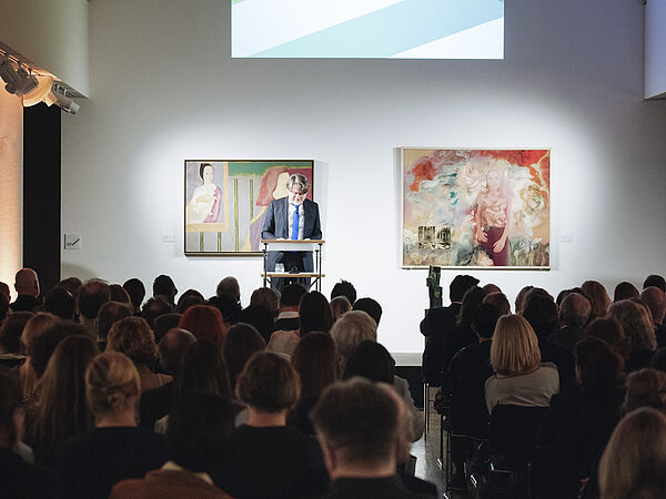 Im April 2019 fand zum vierten Mal die Verleihung des ART-Kuratorenpreises bei VAN HAM in Köln statt. Im großen Auktionssaal wurde geschwärmt, gefeiert und diskutiert. Der begehrte Preis ging zum ersten Mal an eine Altmeister-Schau: Die Wiener Bruegel- Ausstellung im Kunsthistorischen Museum gewann mit sensationellen Leihgaben und akribischer Aufbereitung. Erneut verlieh Tim Sommer, Chefredakteur des ART Kunstmagazins, die Auszeichnung, die nicht nur das geläufige, an Thesen und Tendenzen der Gegenwartskunst orientierte Kuratieren würdigen soll, sondern auch die beharrliche Arbeit am Bestand, an der Kunstgeschichte, an der Erforschung des scheinbar Bekannten. Die Jury entschied nach intensiver Diskussion einstimmig, in diesem Jahr die große Wiener Bruegel-Schau mit dem Preis zu ehren. Altmeister-Ausstellungen gibt es viele – diese war gleich in vielerlei Hinsicht etwas Besonderes: Sabine Pénot und Alice Hoppe-Harnoncourt, die den Preis stellvertretend für das vierköpfige Kuratorenteam entgegennahmen, gelang es, einen Großteil von Bruegels malerischem Werk erstmals überhaupt unter einem Dach zu versammeln. Circa 40 Gemälde von Pieter Bruegel d. Ä. (1525/30 bis 1569) sind erhalten, zwölf sind Teil der Sammlung des Kunsthistorischen Museums Wien. Hinzu kamen so viele Leihgaben nach Wien, dass am Ende fast 30 Bruegel- Gemälde gezeigt werden konnten. Die Laudatorin Almuth Spiegler, Kunstkritikerin und Journalistin, beschrieb den Zauber der Ausstellung und lobte die akribische wissenschaftliche und restauratorische Arbeit. Mit dem Slogan „Once in a lifetime“ bewarb das Museum die Ausstellung – und die damit einmalige Gelegenheit, etwa die beiden Fassungen des Turmbaus zu Babel miteinander vergleichen zu können. Dies nutzten über 440 000 Besucher – die höchste Zahl, die das Museum mit einer Ausstellung jemals erzielte. Wie jedes Jahr wurde der Preis während der Kunstmesse Art Cologne bei VAN HAM verliehen. Tim Sommer, Chefredakteur von Art, erzählte in seiner Einführungsrede von den veränderten Bedingungen, unter denen Kunstausstellungen heute vom Publikum aufgenommen werden. Dass ein vor 450 Jahren gestorbener niederländischer Maler solch eine Masse an Besuchern um sich versammeln konnte, sei ein Grund zum Feiern. Und so geschah es dann auch.