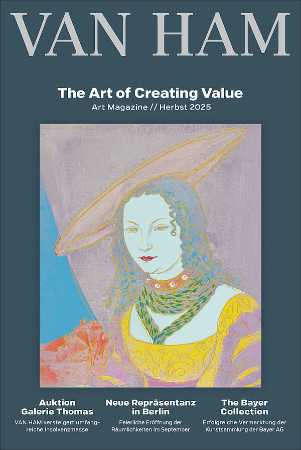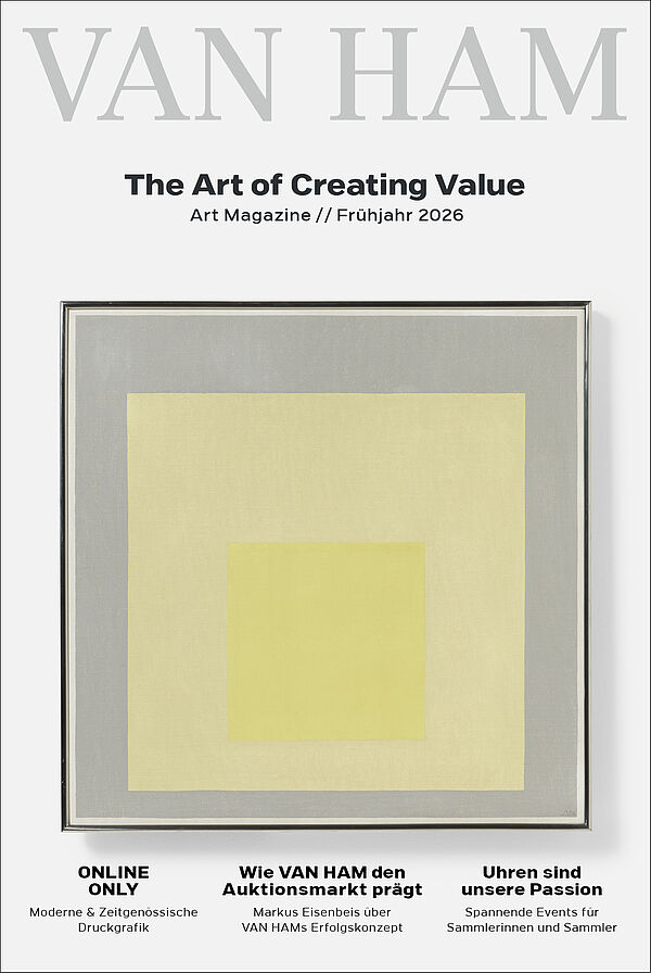 Zweimal im Jahr erscheint das VAN HAM Art Magazine! Unser aufwendig gestaltetes Kundenmagazin bietet Ihnen einen spannenden Rückblick auf die vergangene Auktionssaison mit Auktionsrekorden und Spitzenpreisen. Darüber hinaus erhalten Sie interessante Einblicke hinter die Kulissen, Interviews mit unseren Experten, abwechslungsreiche Sonderthemen, aktuelle Marktbeobachtungen und vieles mehr.