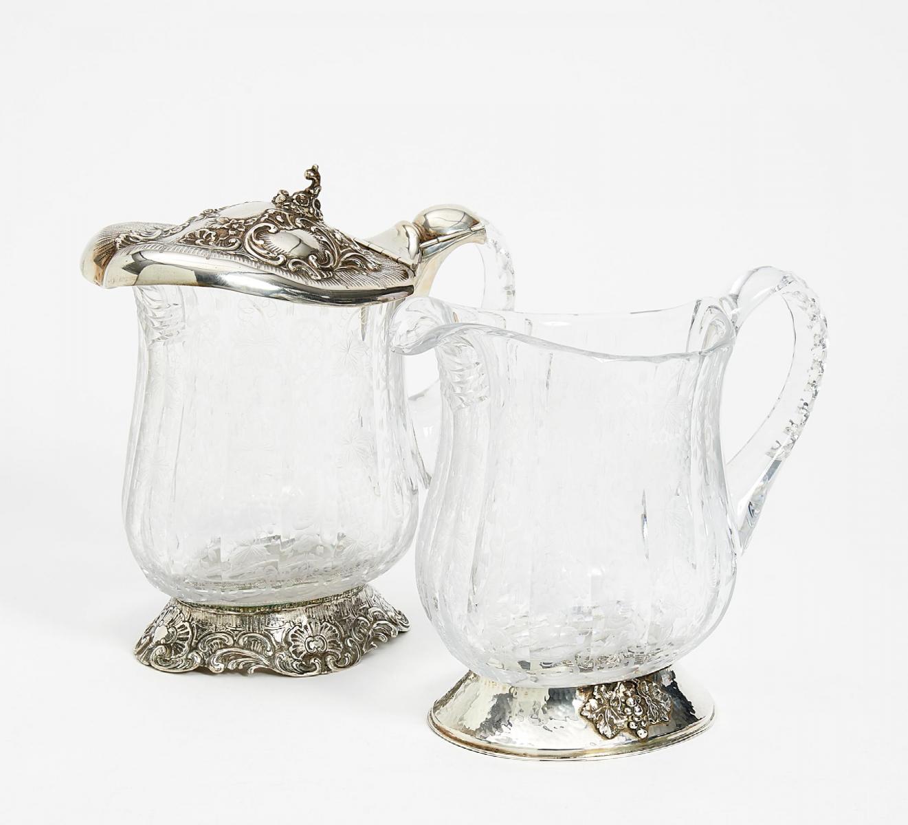 2 KRÜGE MIT SILBERMONTIERUNG.