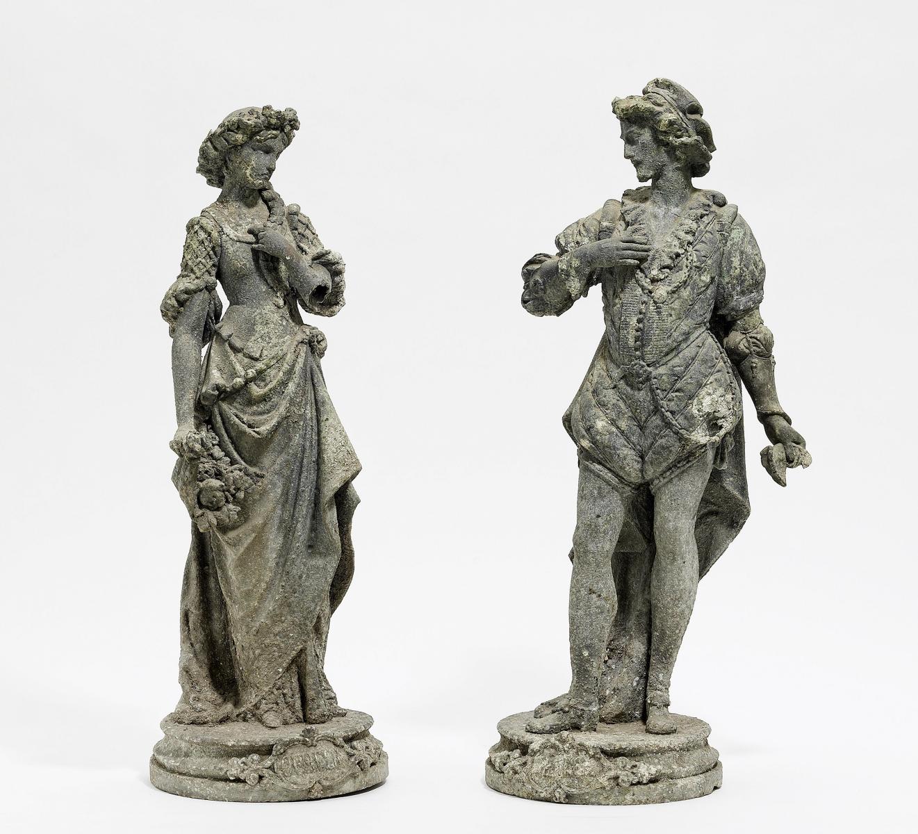 2 STANDFIGUREN, GALANTE DAME UND HERR.