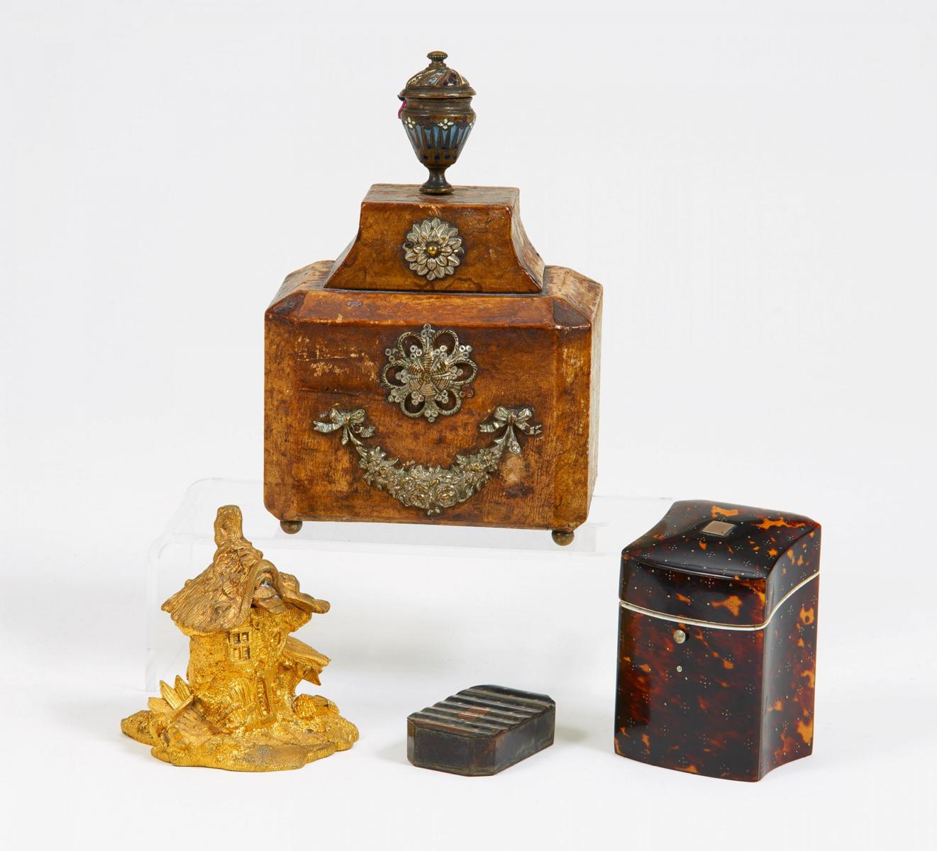 2 TINTENFÄSSER, 1 NÄHETUI UND EINE KLEINE DOSE AUS SCHILDPATT.