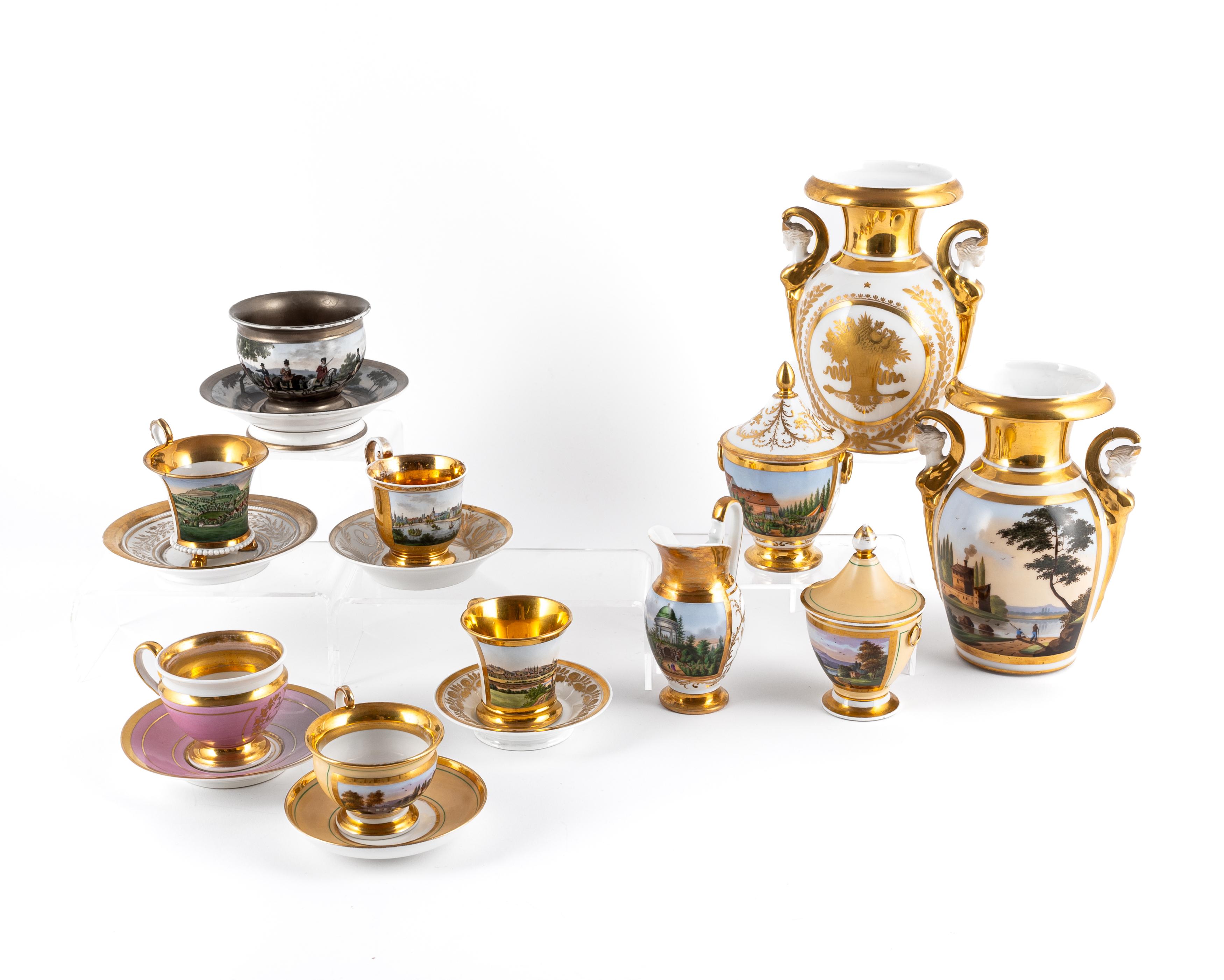 2 VASEN, 2 ZUCKERDOSEN, 5 TASSEN MIT UT, MILCHKÄNNCHEN & SCHALE.