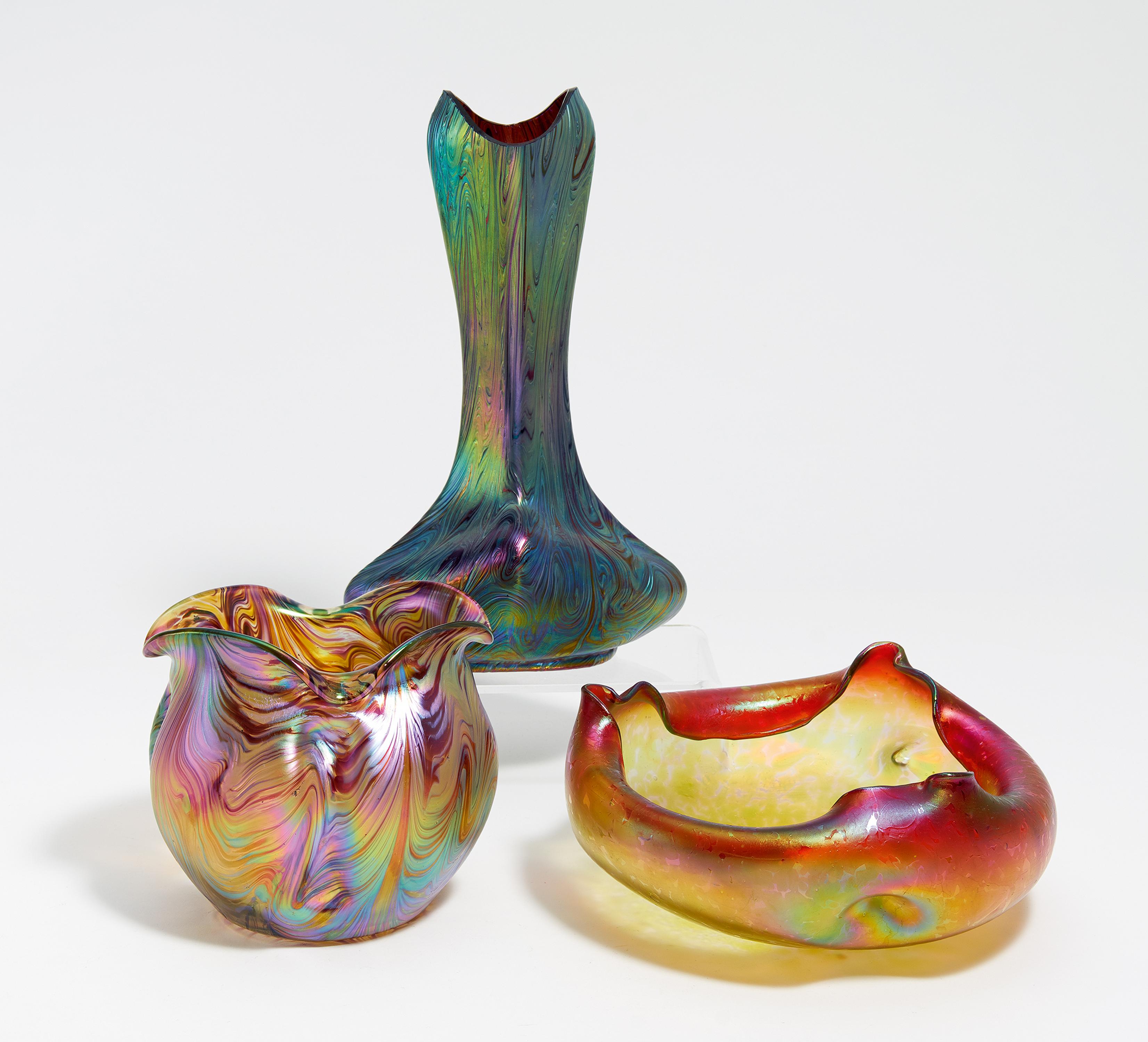 Beilage: Schale, mehrfarbig irisierendes Glas.