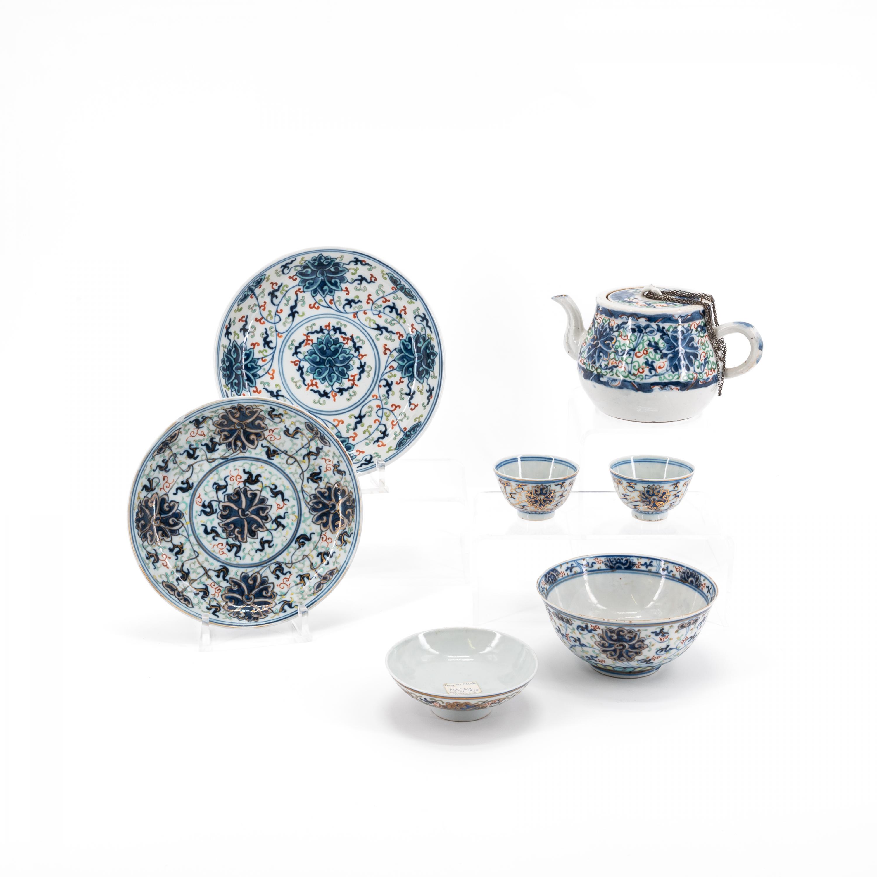 2 Koppchen, 1 Reisschale mit Deckel, 2 kleinen Anbiet-Tellern, 1 kleinen Teekanne.