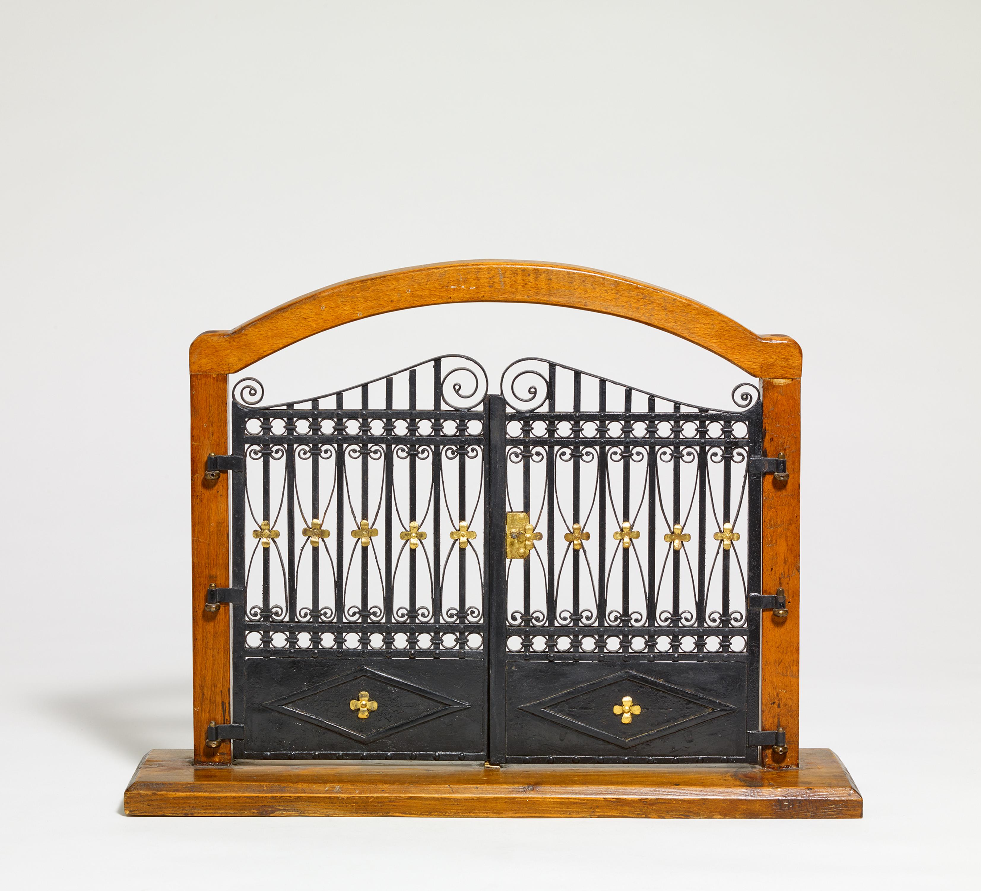 MODELL EINES GITTERTORES IM HOLZGESTELL.