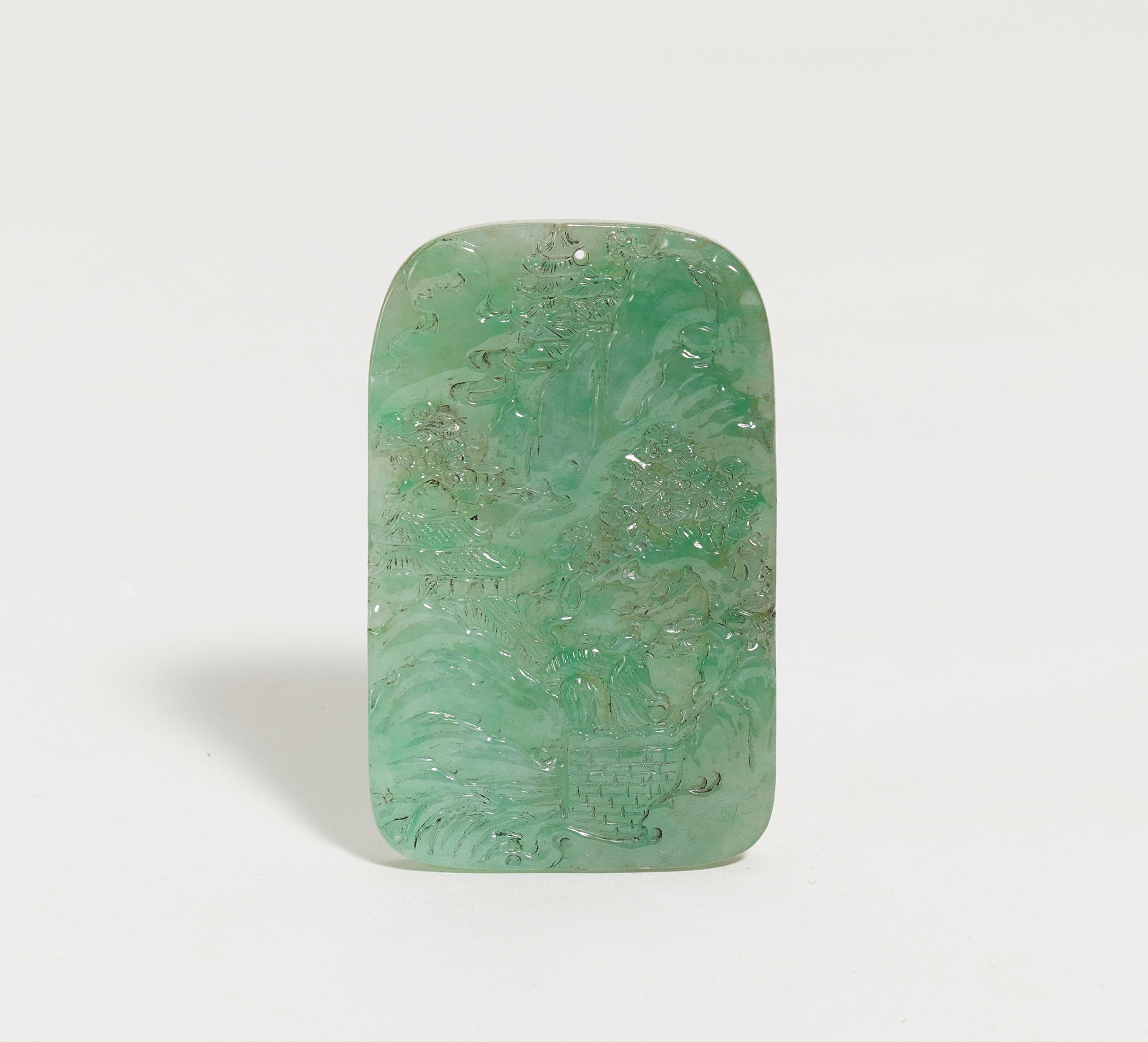 bewachsen mit Kiefern und ausstaffiert mit Pavillons, einer Stadtmauer und einer