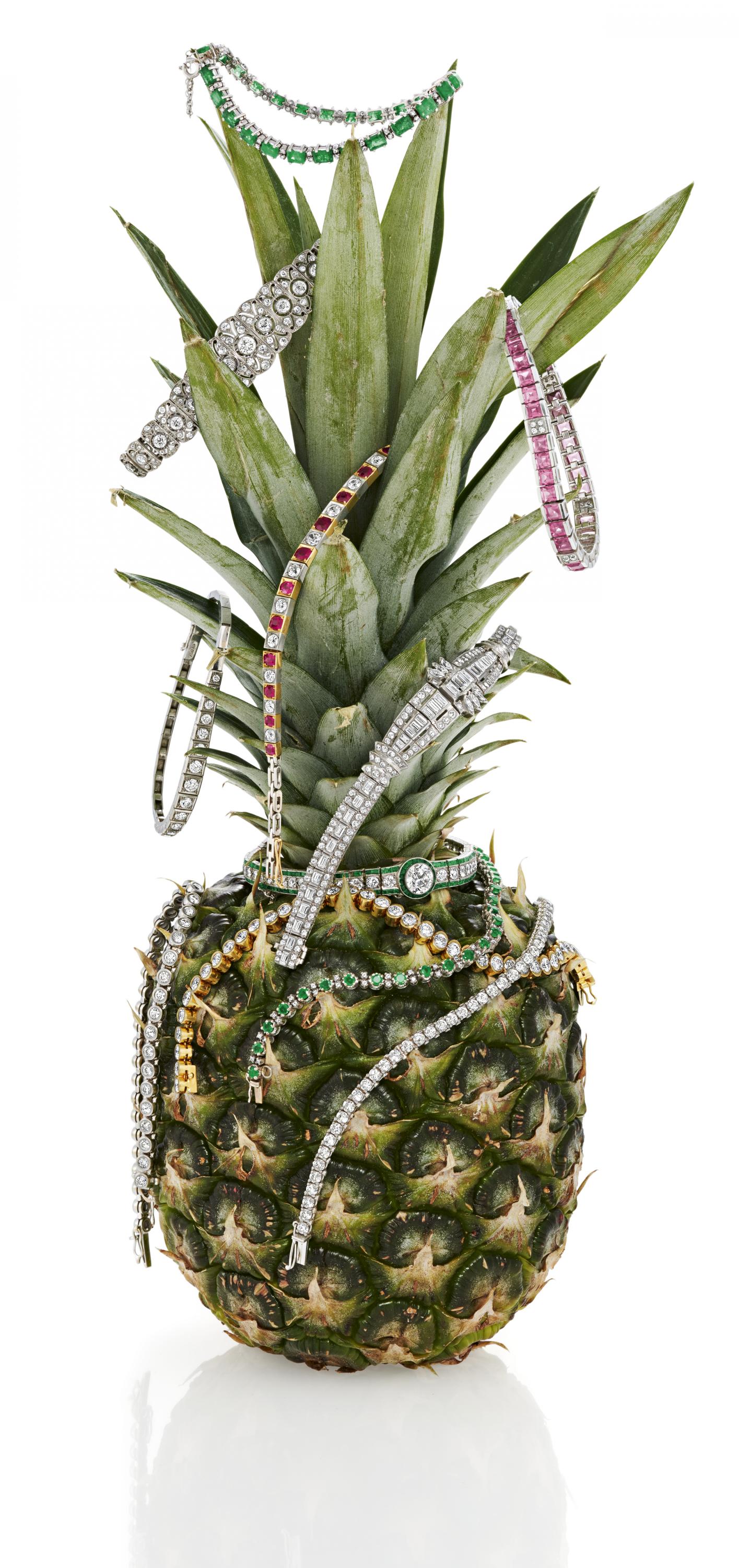 Diamanten: 160 kleine Brillanten, 50 Diamanten im Baguette- und Navette-Schliff zus. ca. 9,5 ct., J-L/VS-SI.