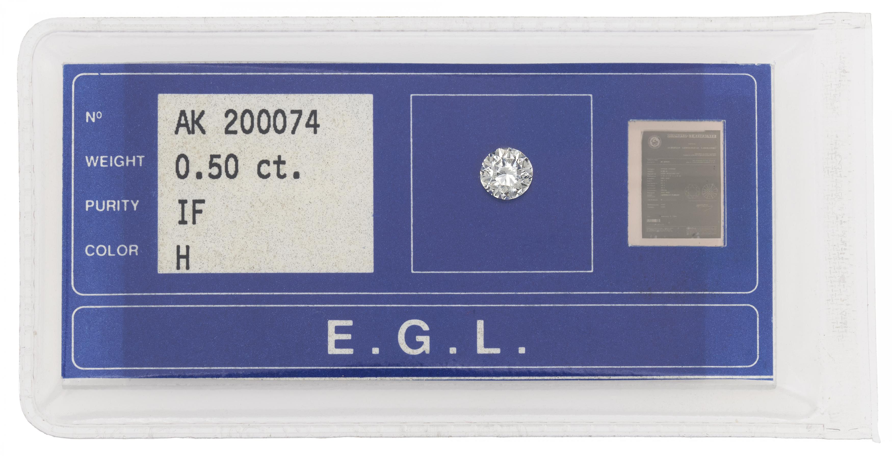 Beschreibung: Angaben laut EGL/Antwerpen von 02/1994: Ca. 0,5 ct., IF/H. Expertise anbei.