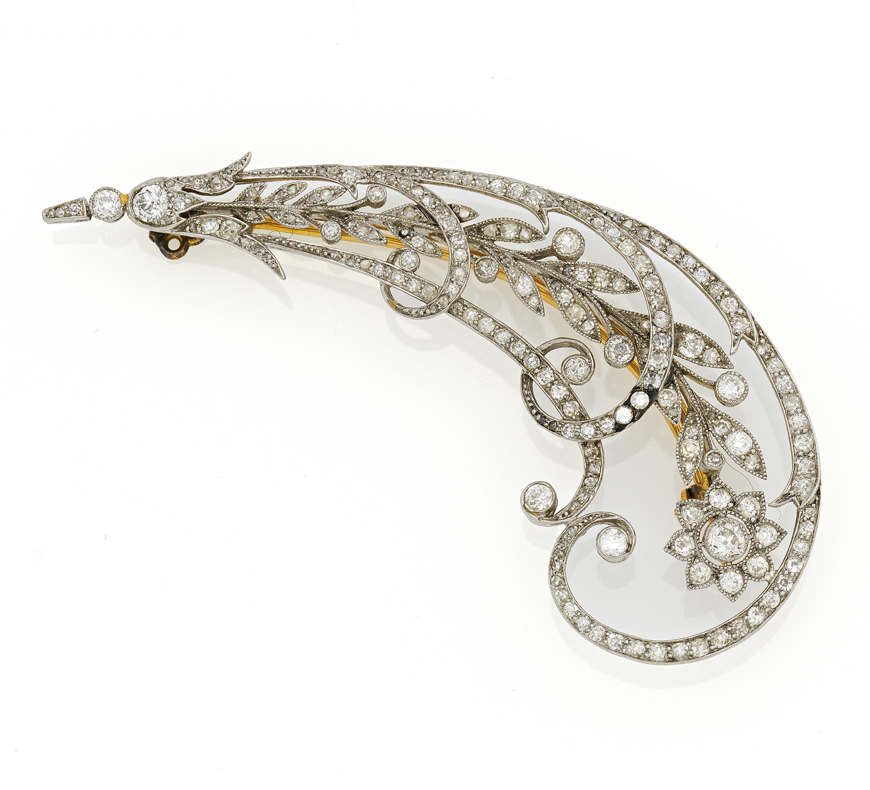 Diamanten: Ca. 165 Diamanten im Alt-, Achtkant- und Rosen-Schliff Ø ca. 1,1 - 3,8 mm.