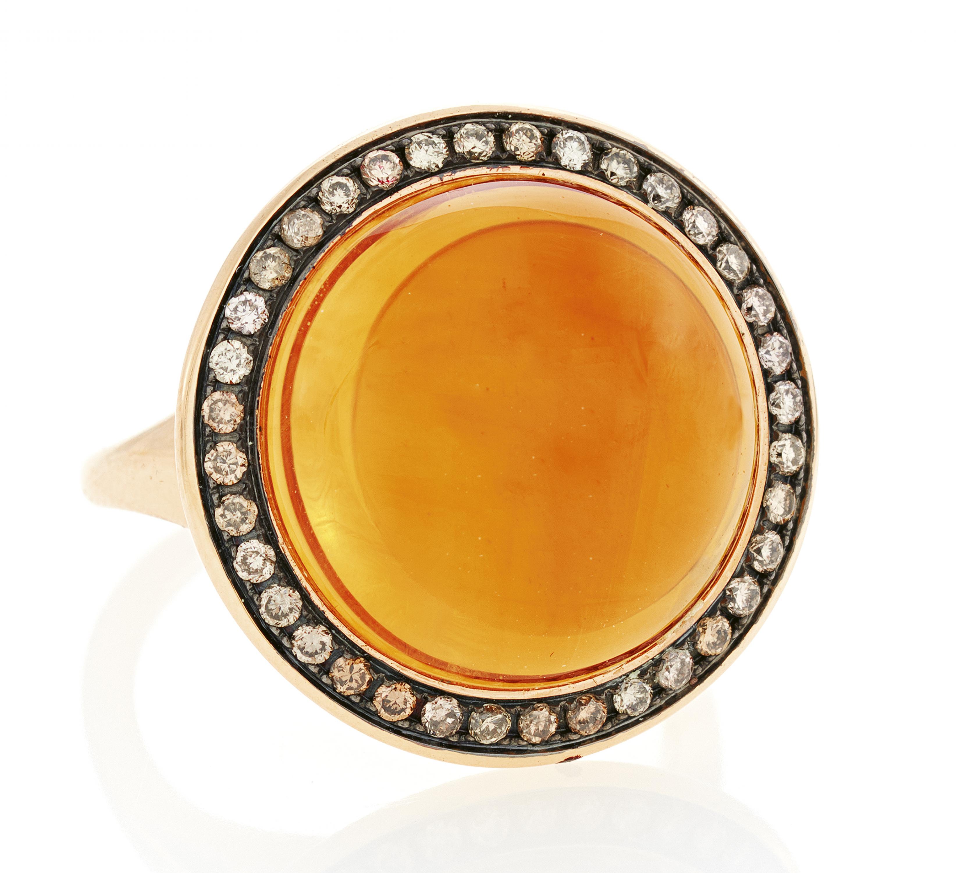 Edelsteine: 1 Citrin im runden Cabochon-Schliff ca. 15,0 ct.