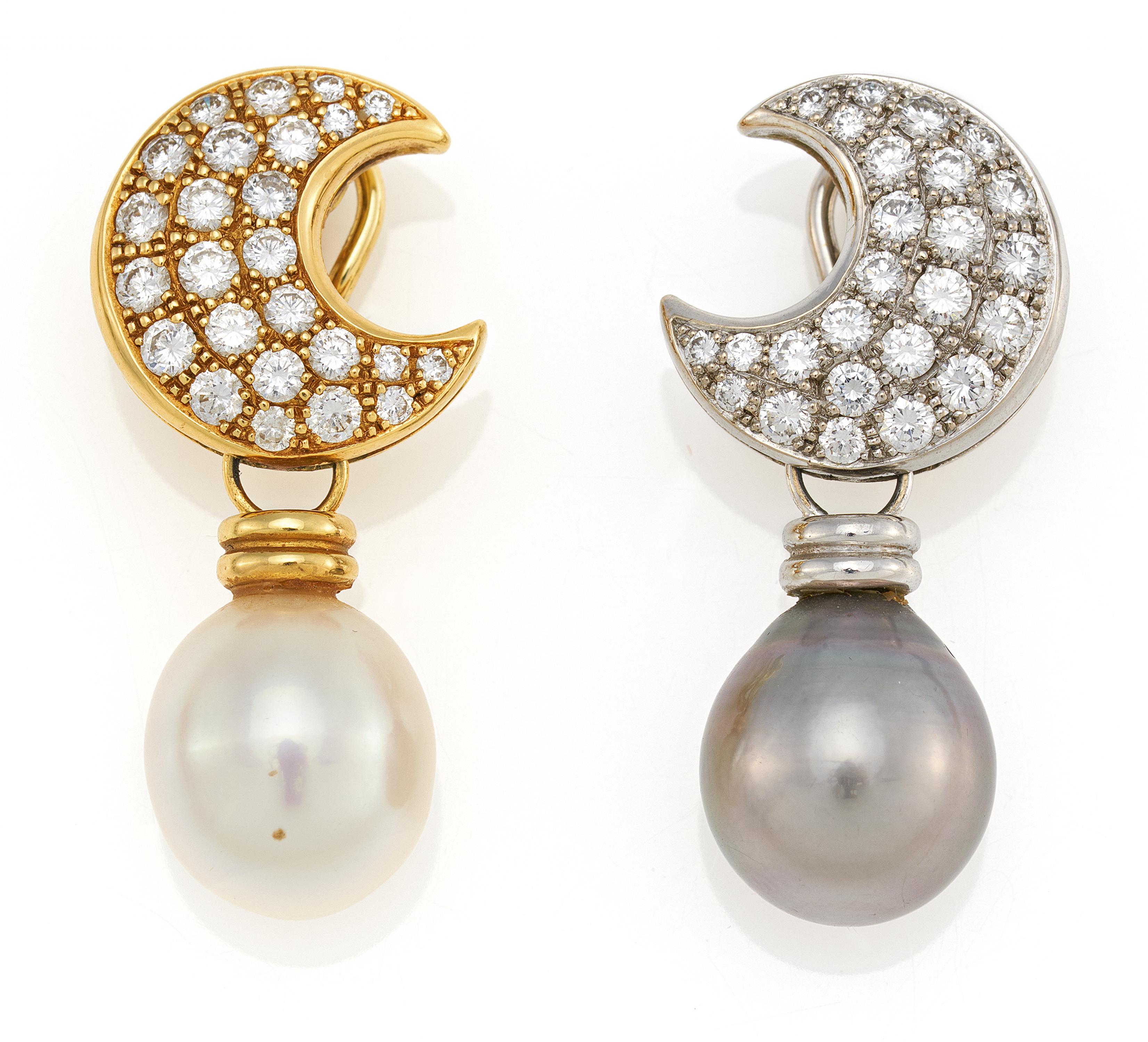Org. Substanzen: Eine anthrazite und eine weiß-crème farbene Südsee-Zuchtperle Ø 11,9 - 12,0 mm, schönes Lüster.