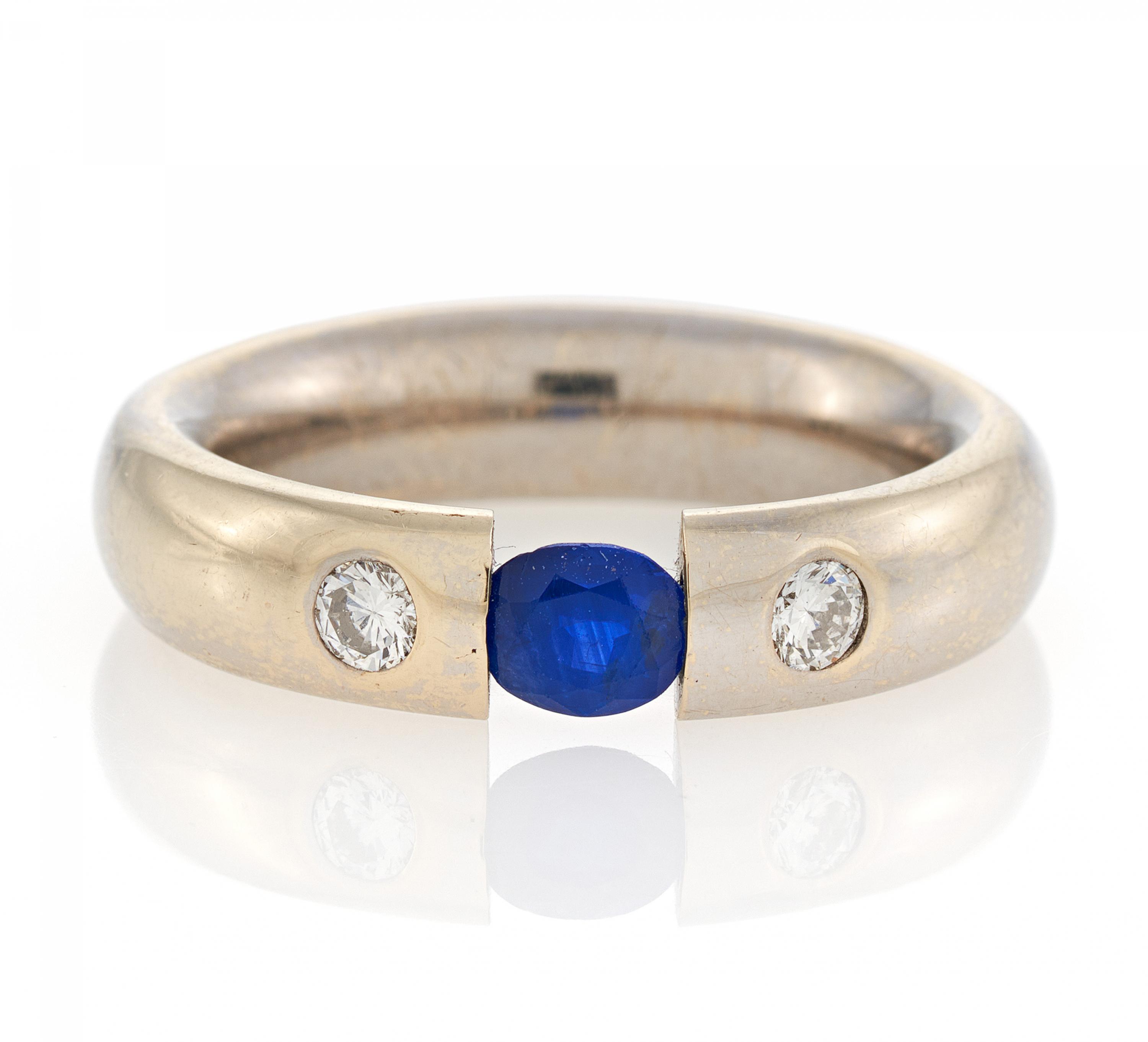 Sehr guter Zustand. Saphir mit Bestoßung. Leichte Tragespuren sichtbar.