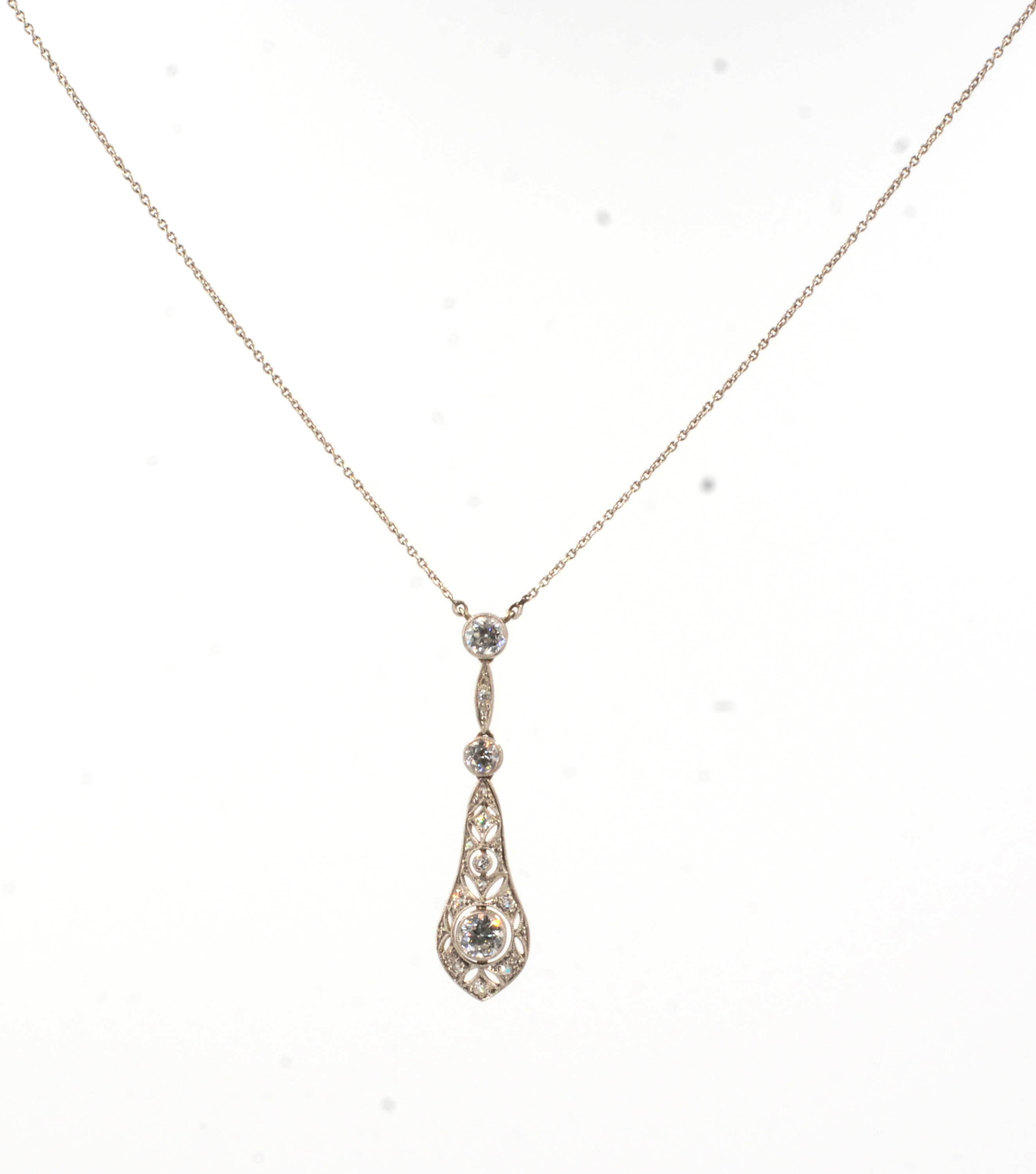 Schön erhaltenen Jugendstil Anhängerkette. Weißgold rückseitig an wenigen Stellen leicht