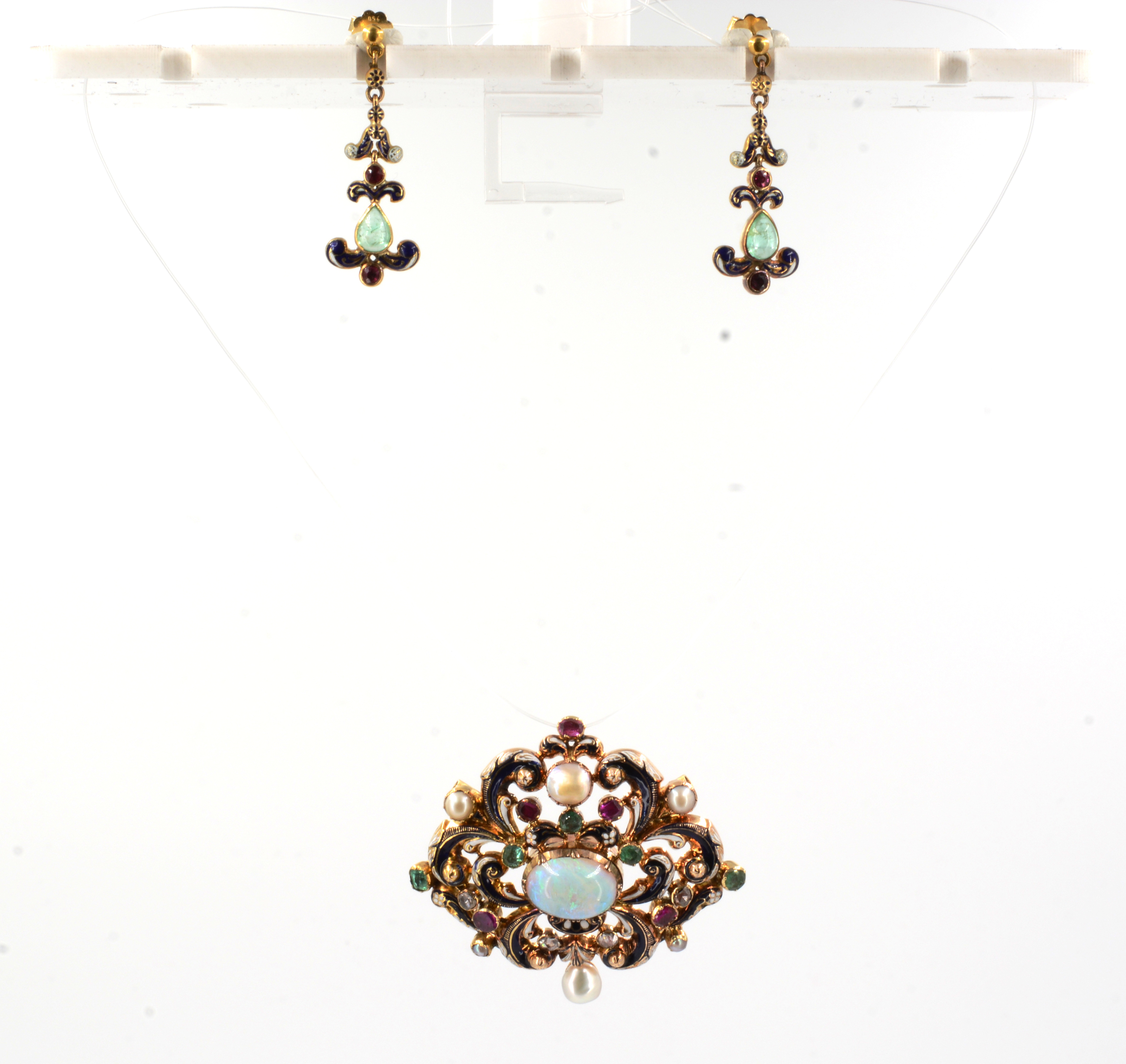 SET: EMAIL-FARBSTEIN-BROSCHE/PENDANT UND OHRHÄNGER.