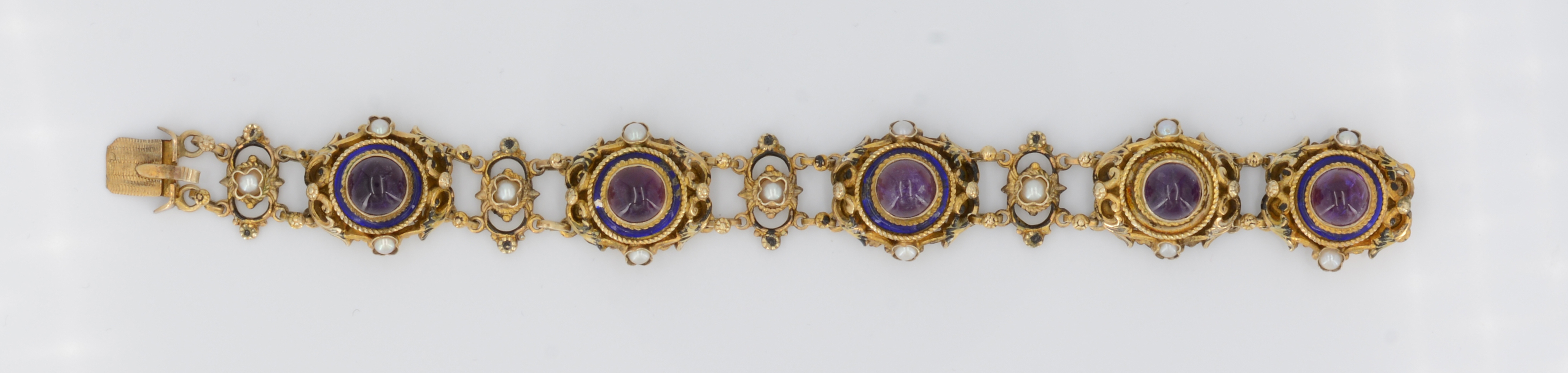 Armband mit deutlichen Tragespuren. Email an vielen Stellen beschädigt und/oder