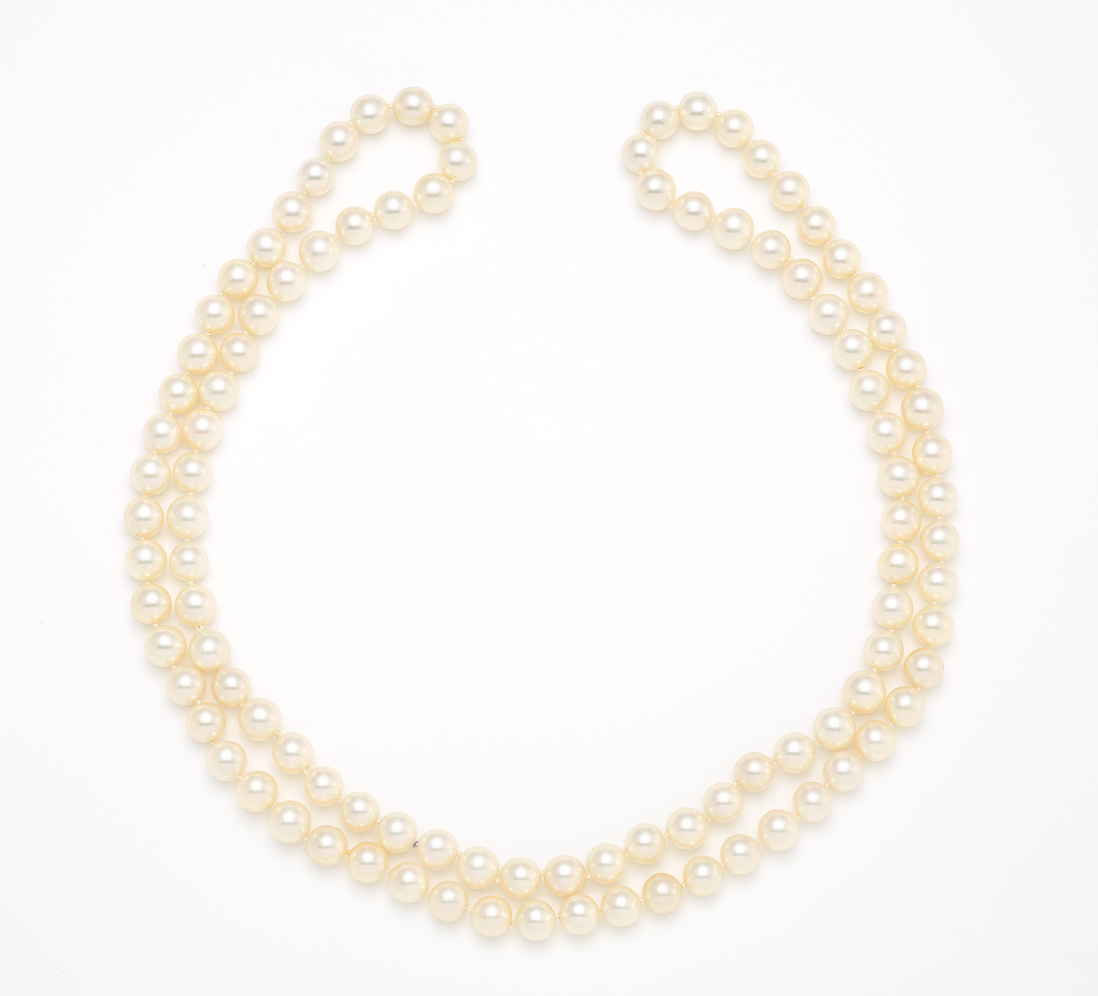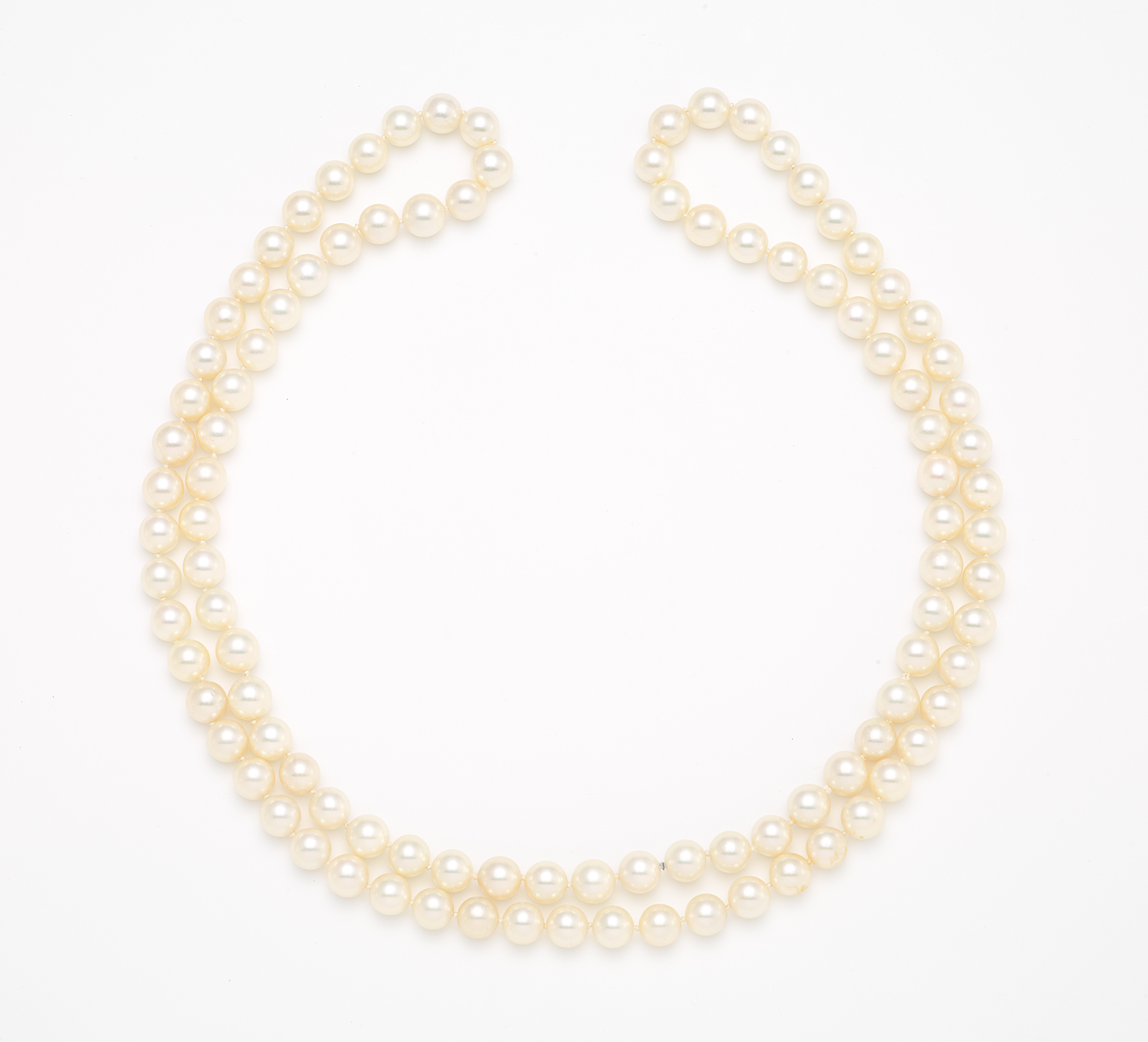 Org. Substanzen: ca. 106 Akoya-Zuchtperlen Ø 8,1 - 8.8 mm, weiß-crème irisierend.