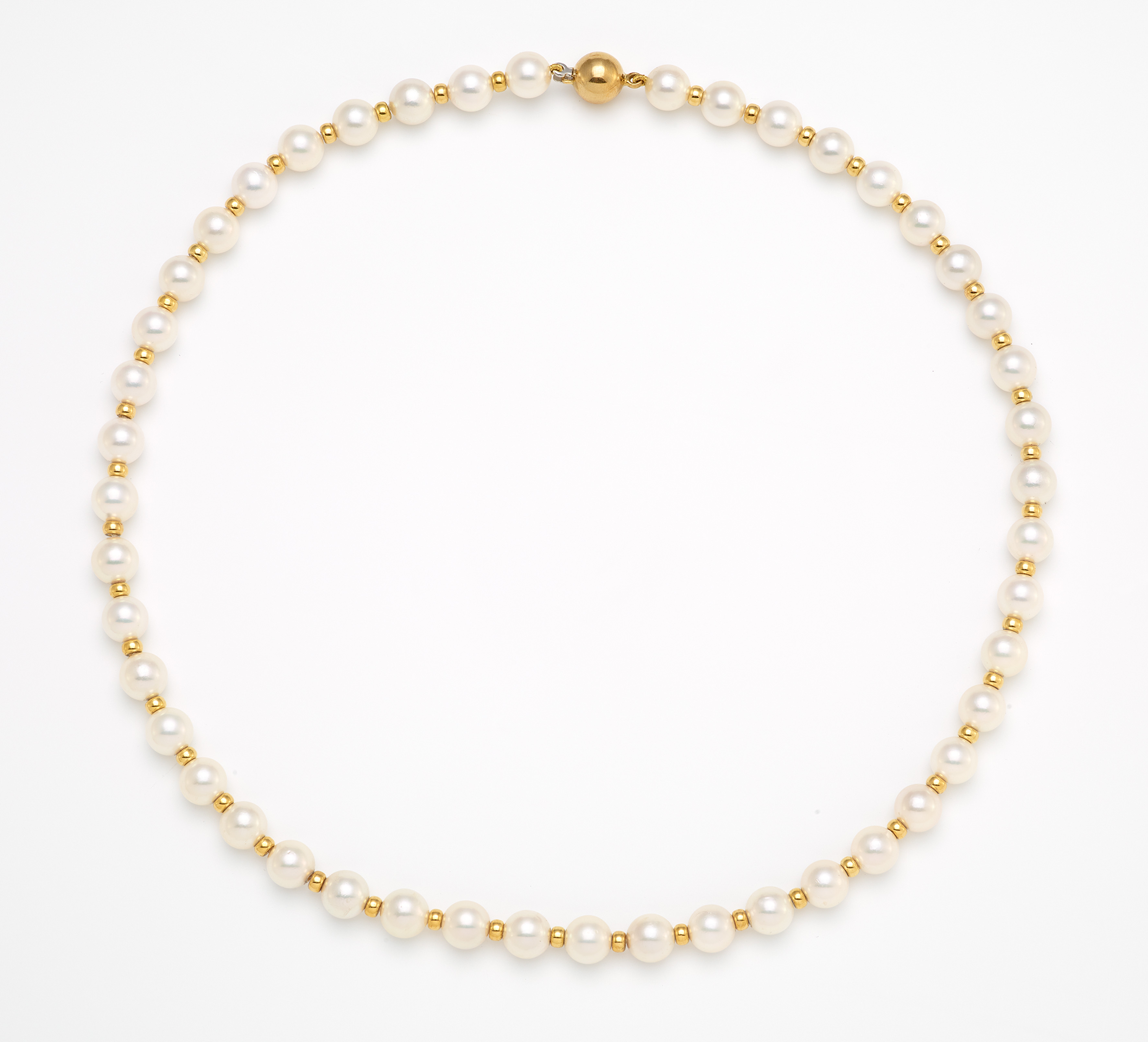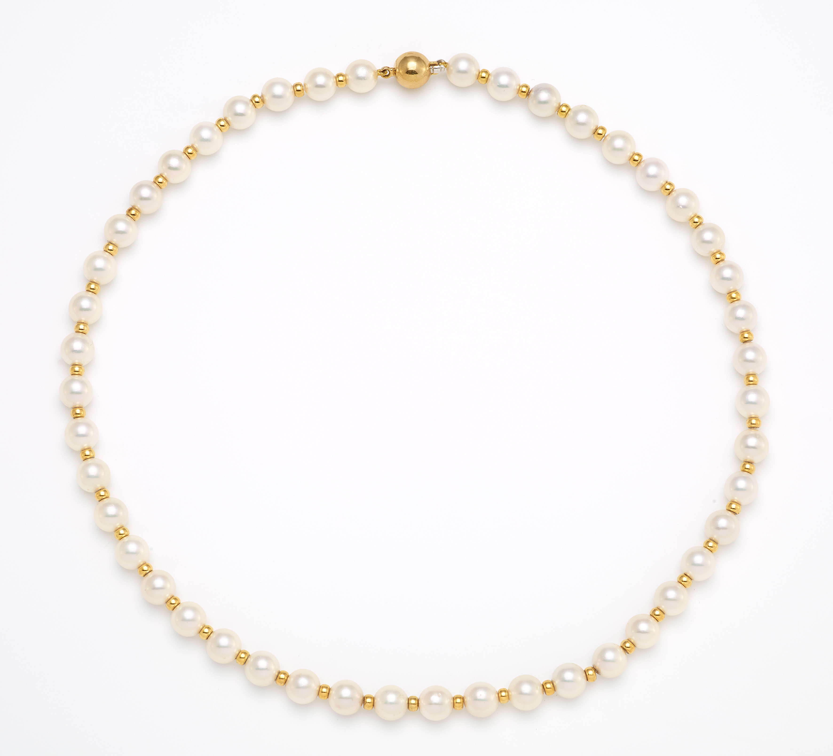 Org. Substanzen: Ca. 46 Zuchtperlen Ø ca. 9,1 mm, weiß-crème.