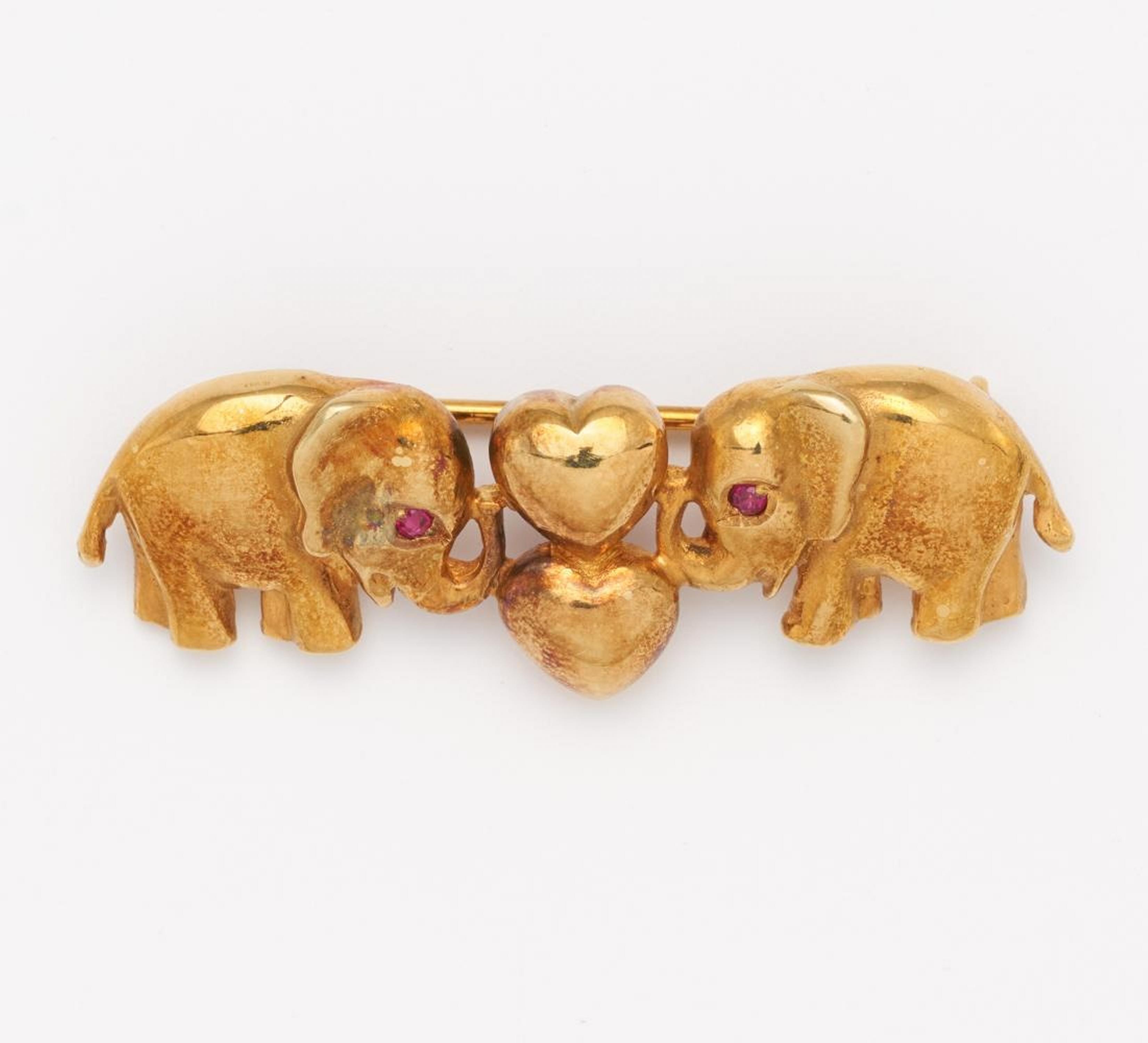 Edelsteine: 2 kleine Rubine, als Augen der Elefanten Ø ca. 1,3 mm.