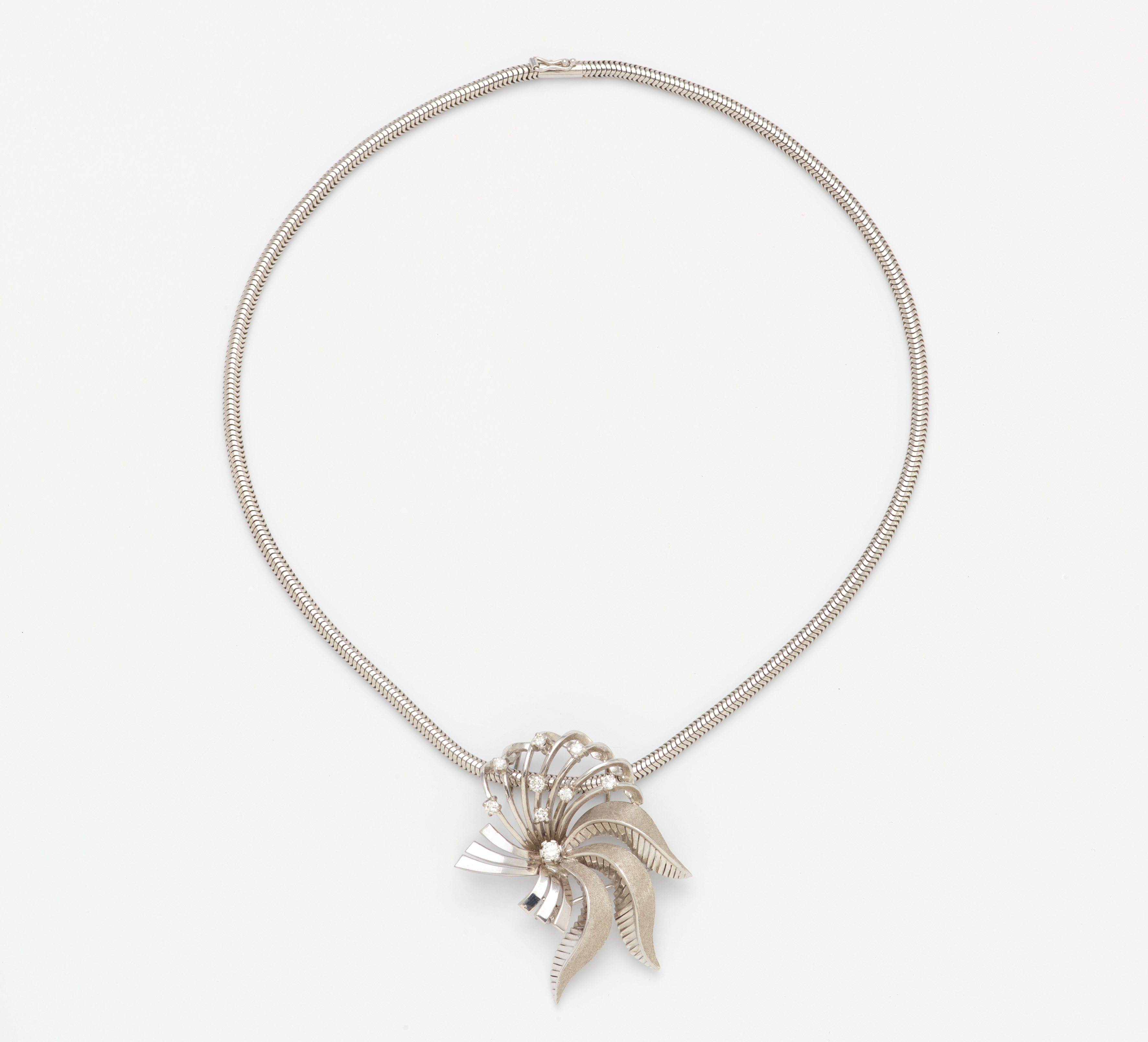 Maße: Kette Länge 41,0 cm, Anhäner/Brosche 4,9 x 4,4 cm.