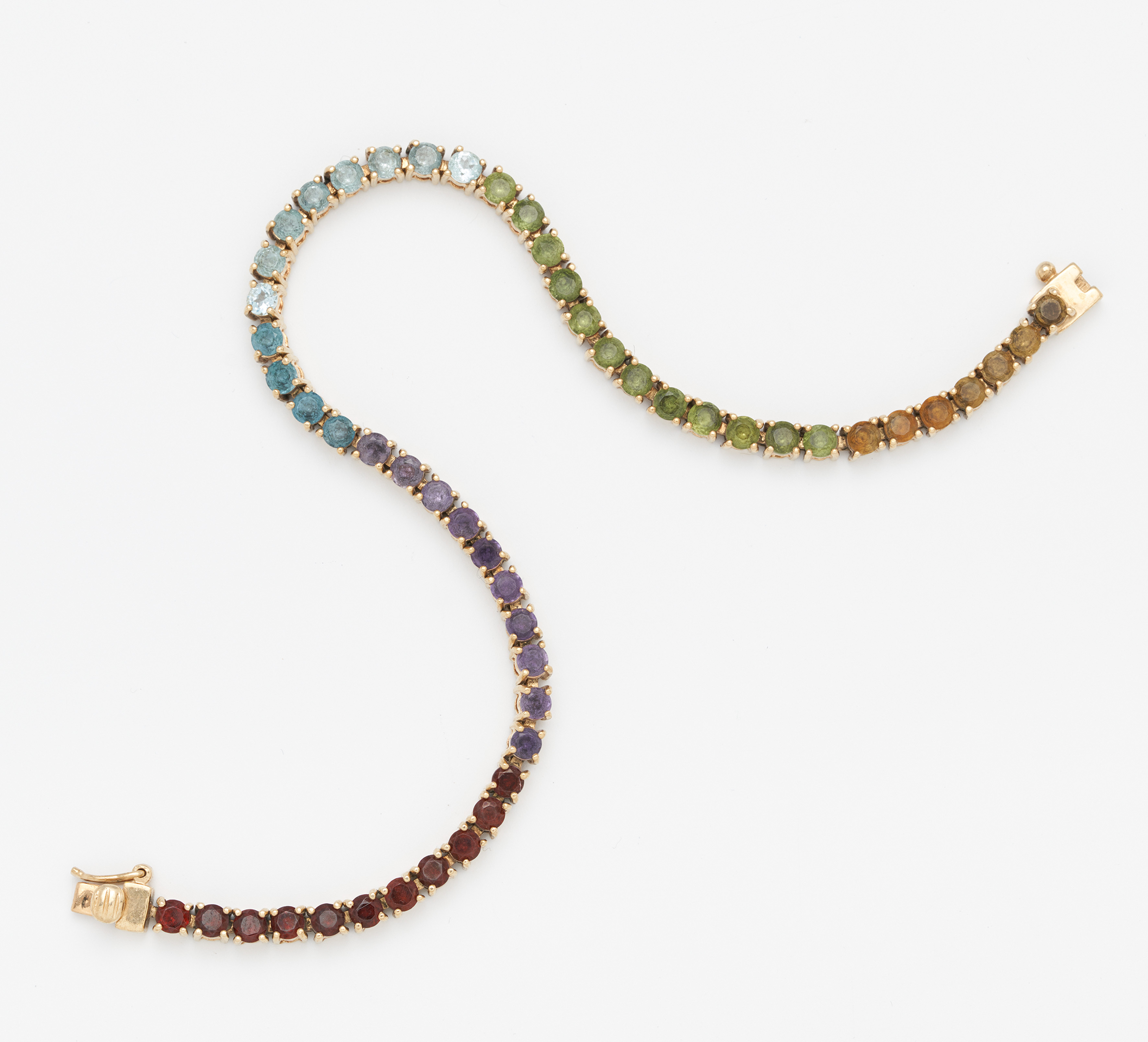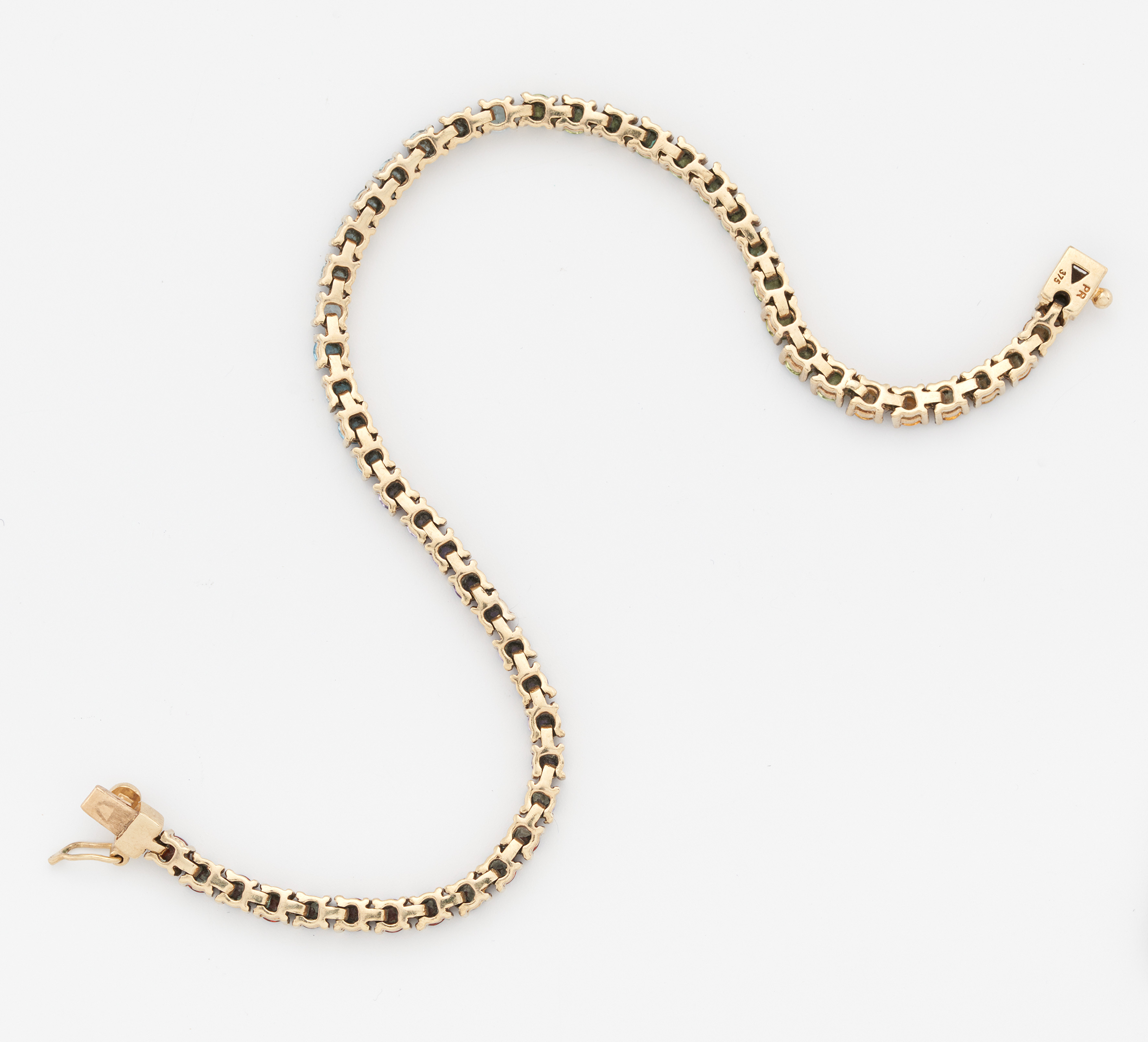 Gold und Farbsteine mit Tragespuren, Glieder gedehnt.