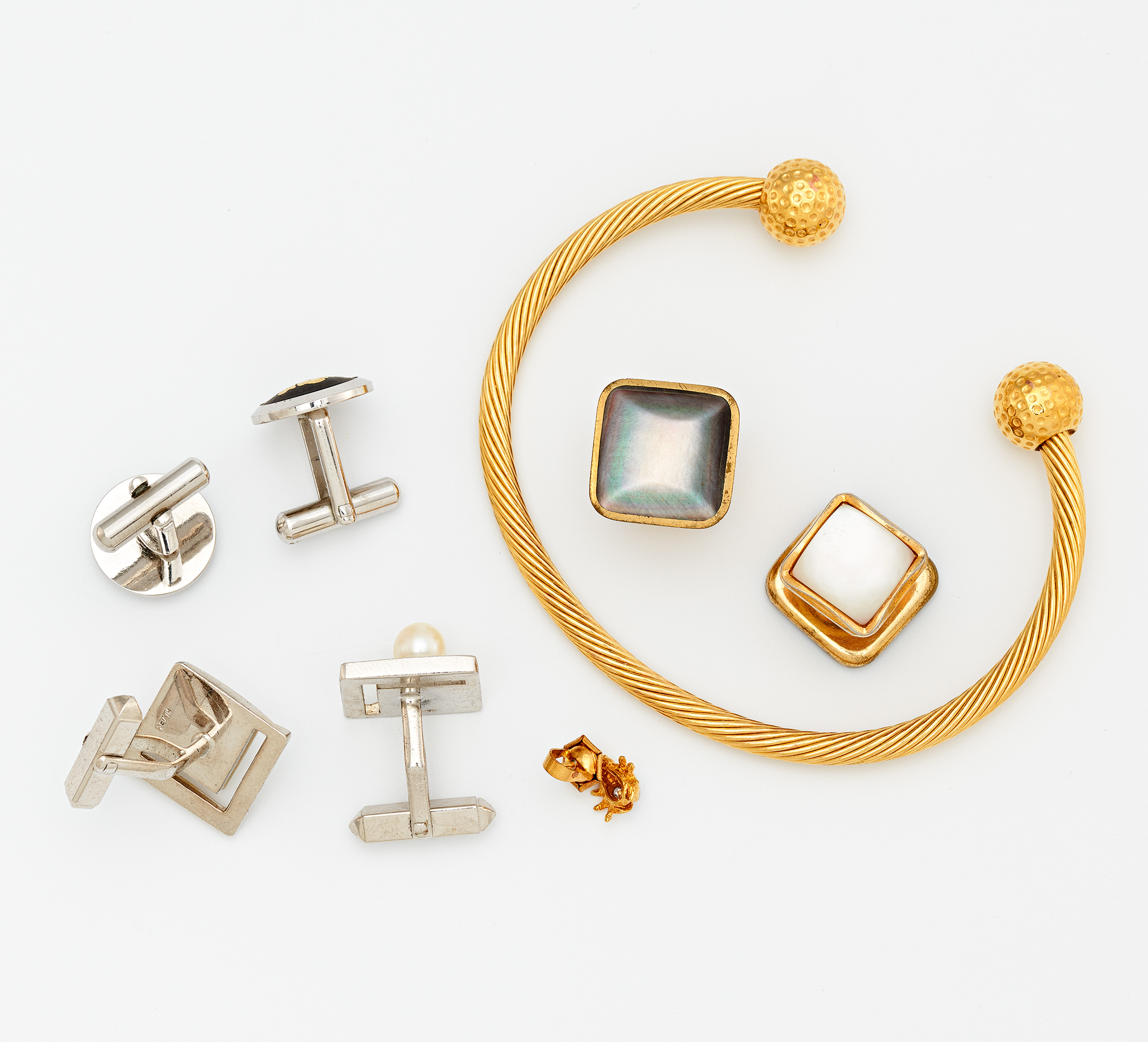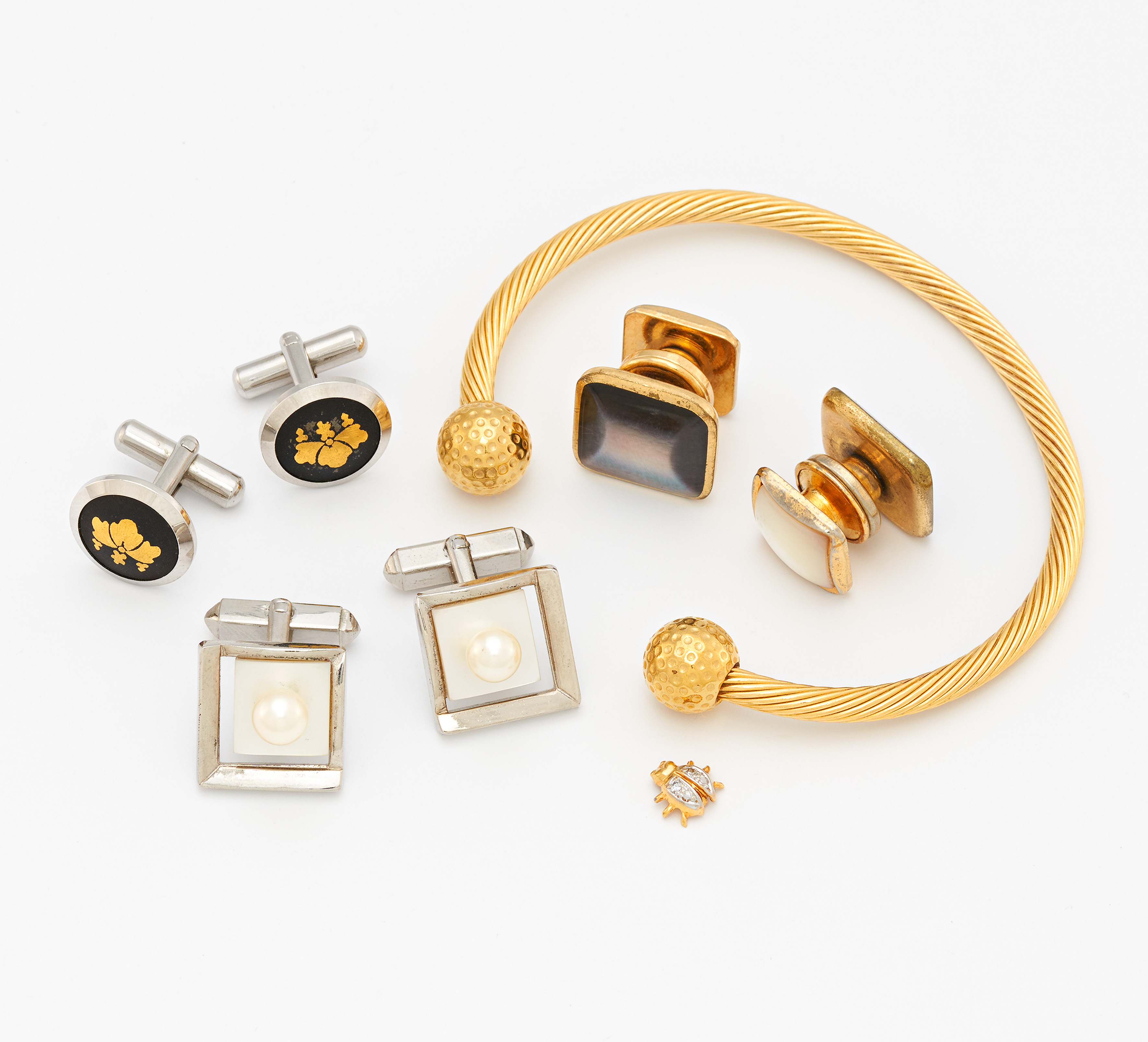 KONVOLUT: 3 PAAR MANSCHETTENKNÖPFE, 1 PIN, 1 ARMREIF.