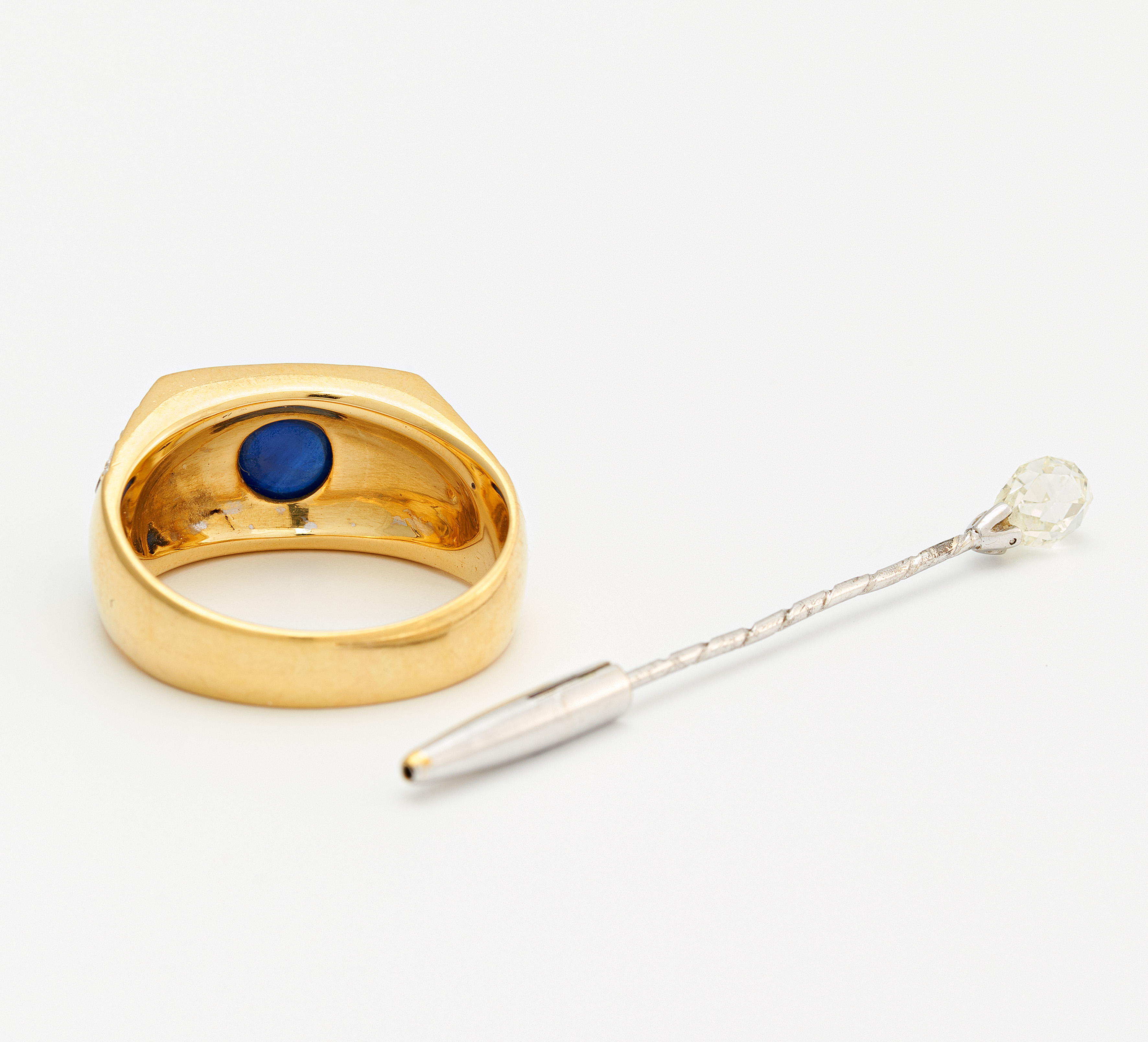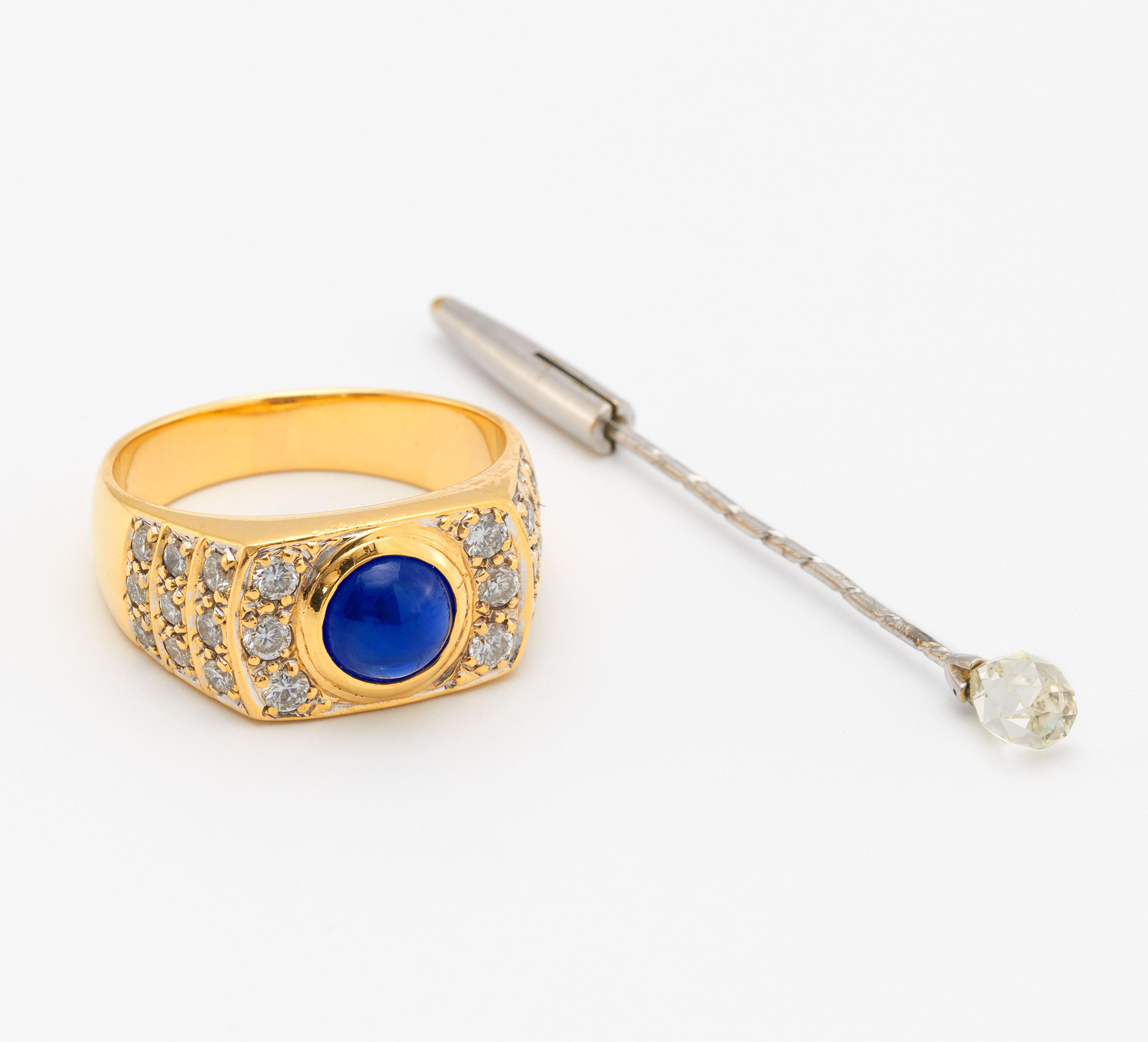 SAPHIR-DIAMANT-RING UND ANSTECKNADEL.