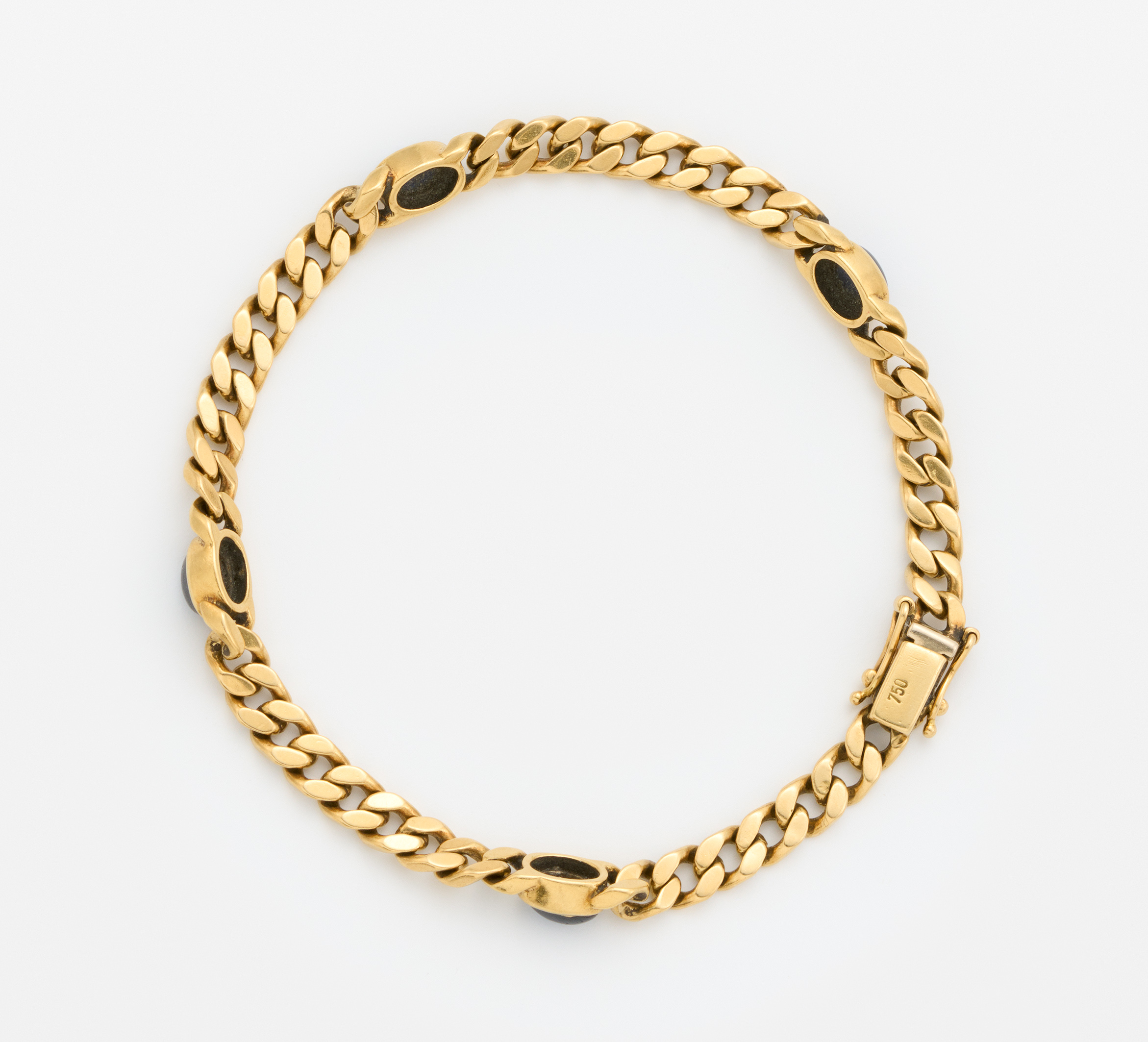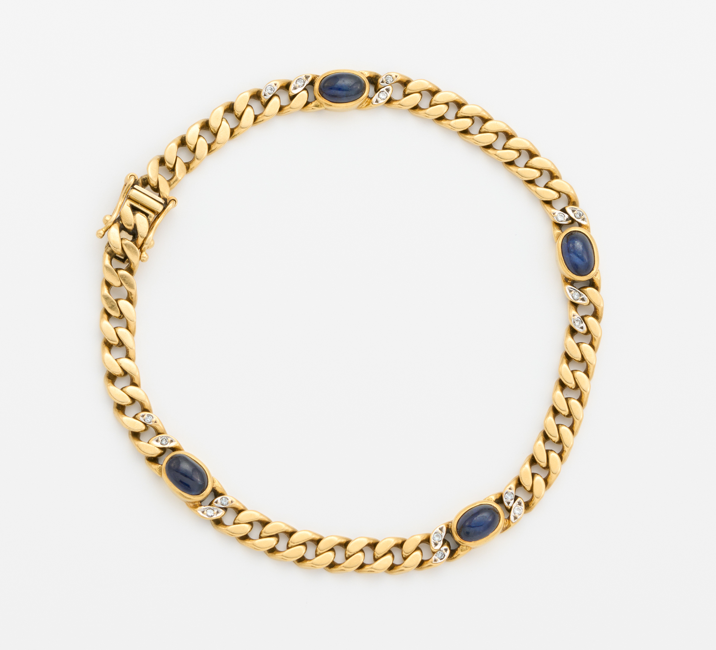 Edelsteine: 4 blaue, ovale Farbsteine im Cabochon-Schliff, wohl Saphire, zus. ca. 2,8 ct.