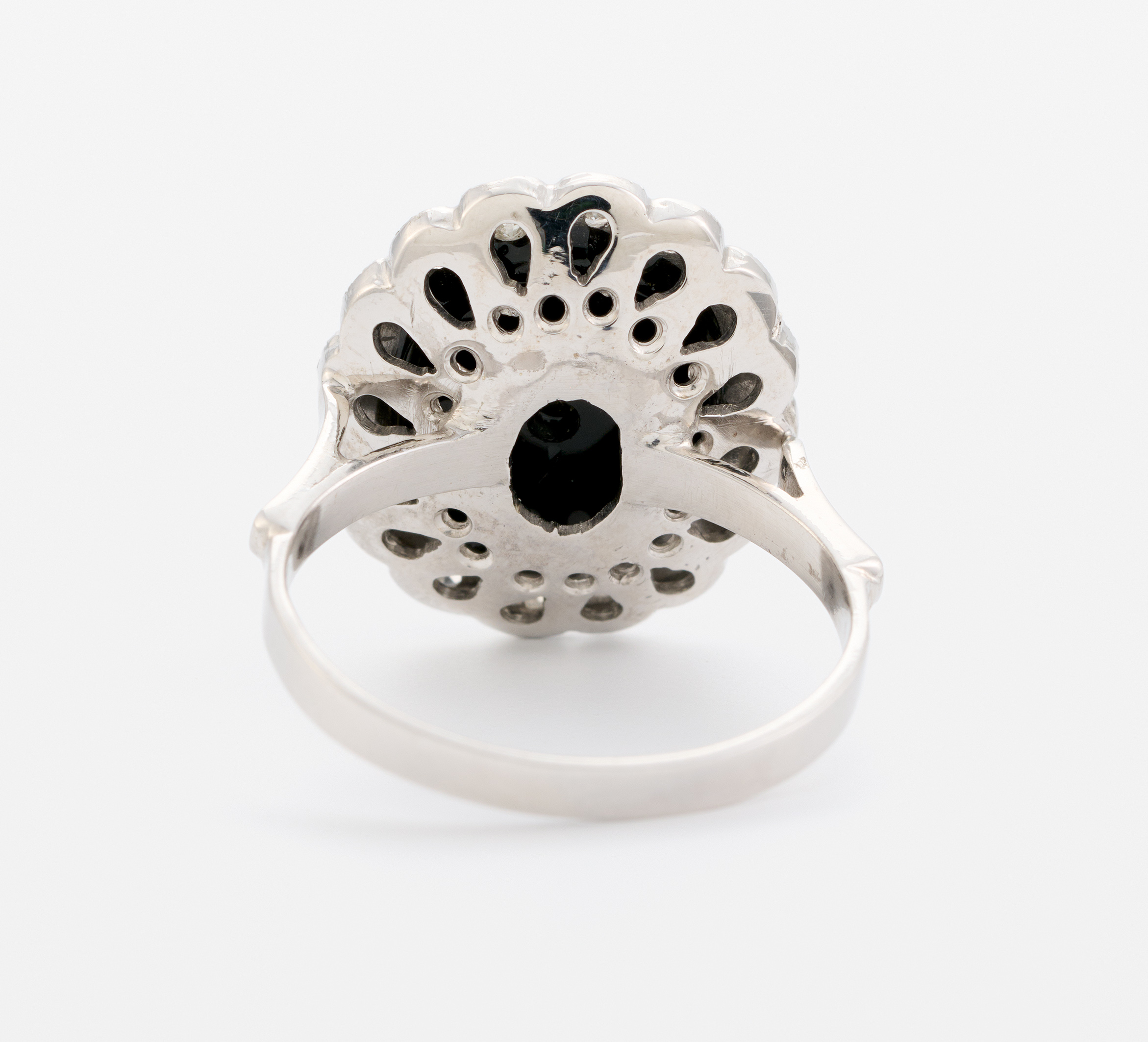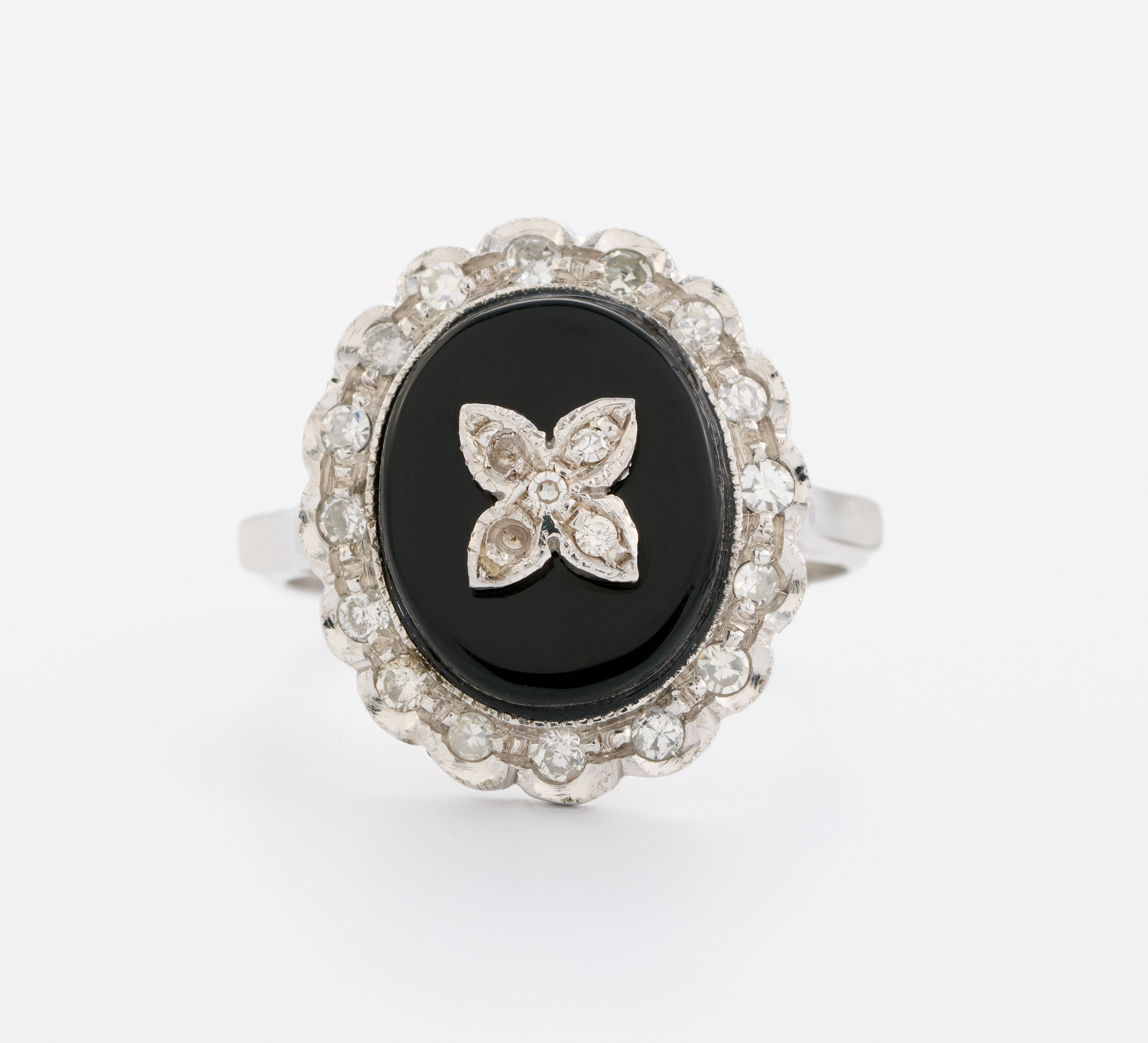Edelsteine: 1 ovale Onxy-Platte 12,1 x 10,1 mm.