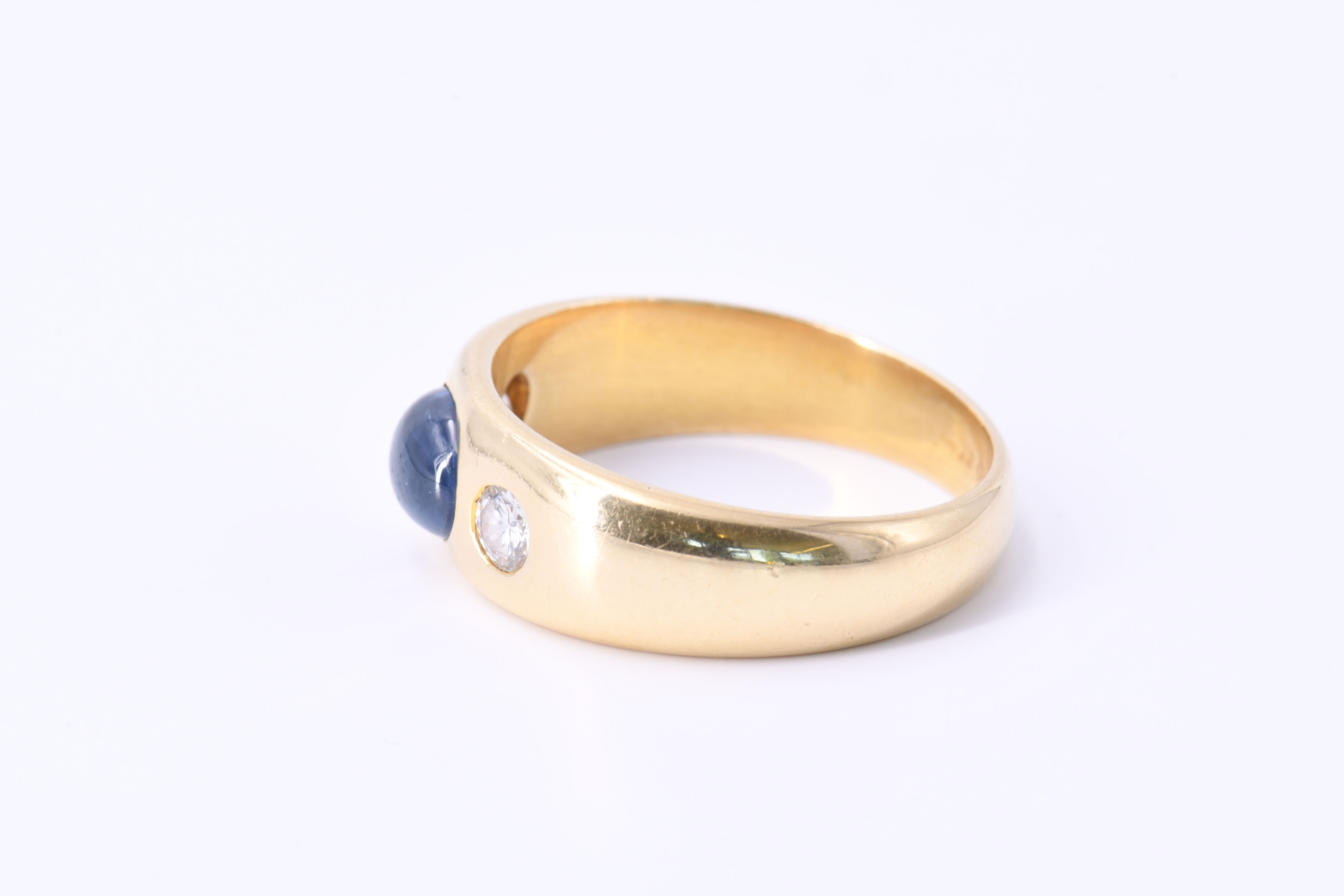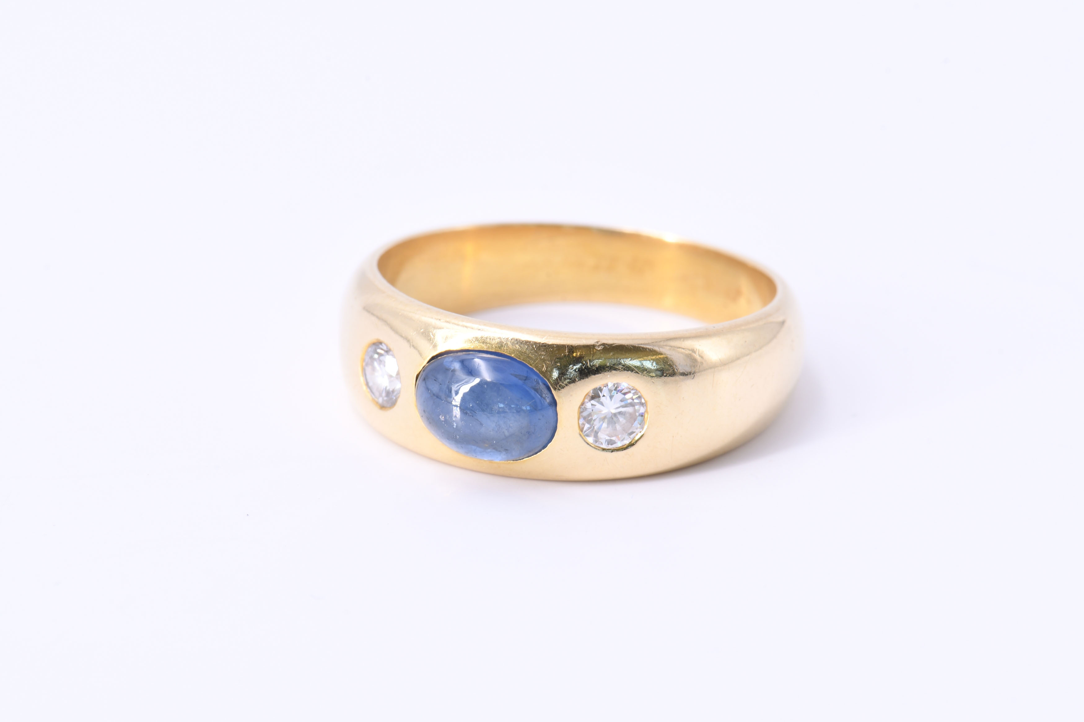 Edelsteine: 1 ovaler Farbstein-Cabochon, wohl Saphir ca. 1,47 ct.