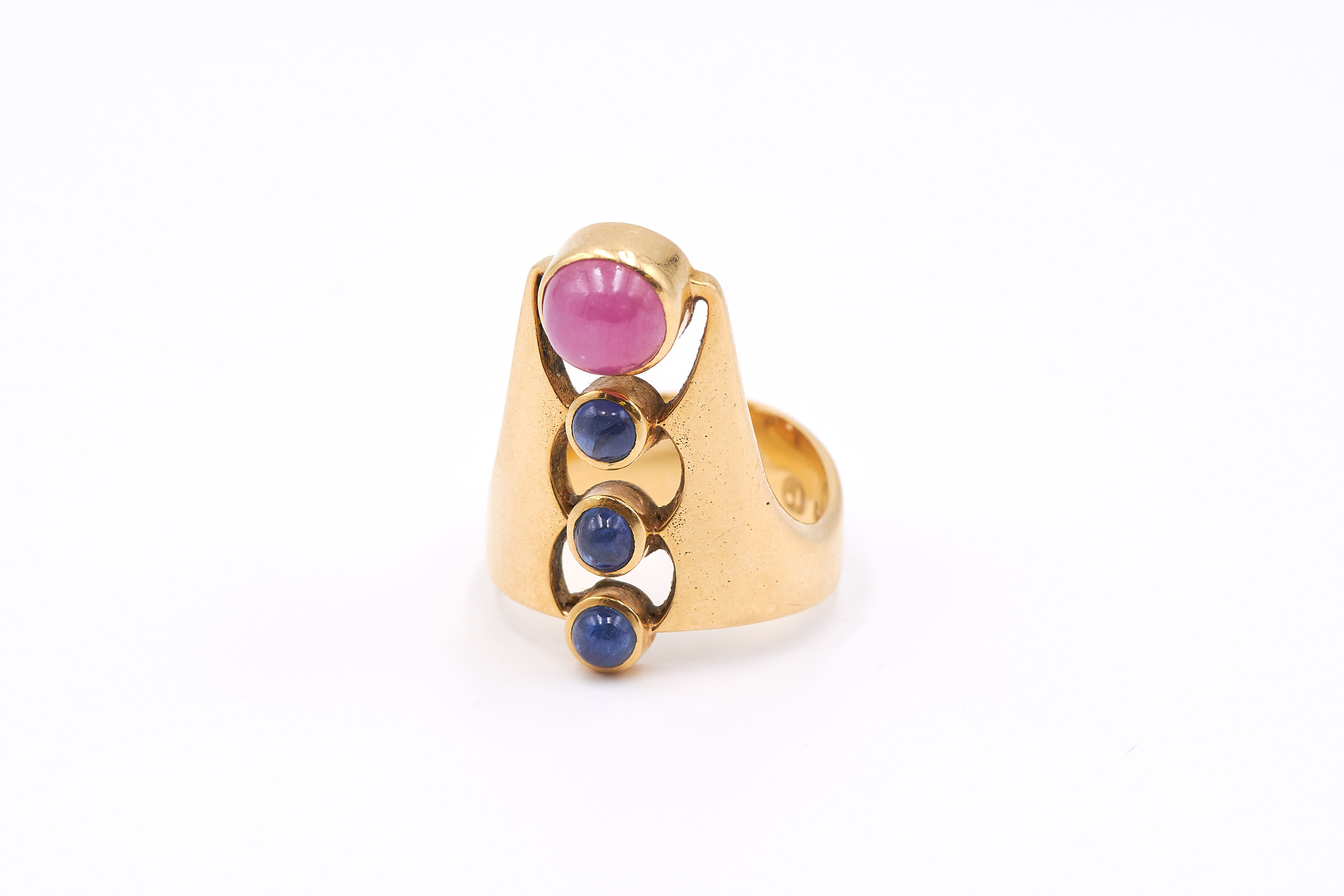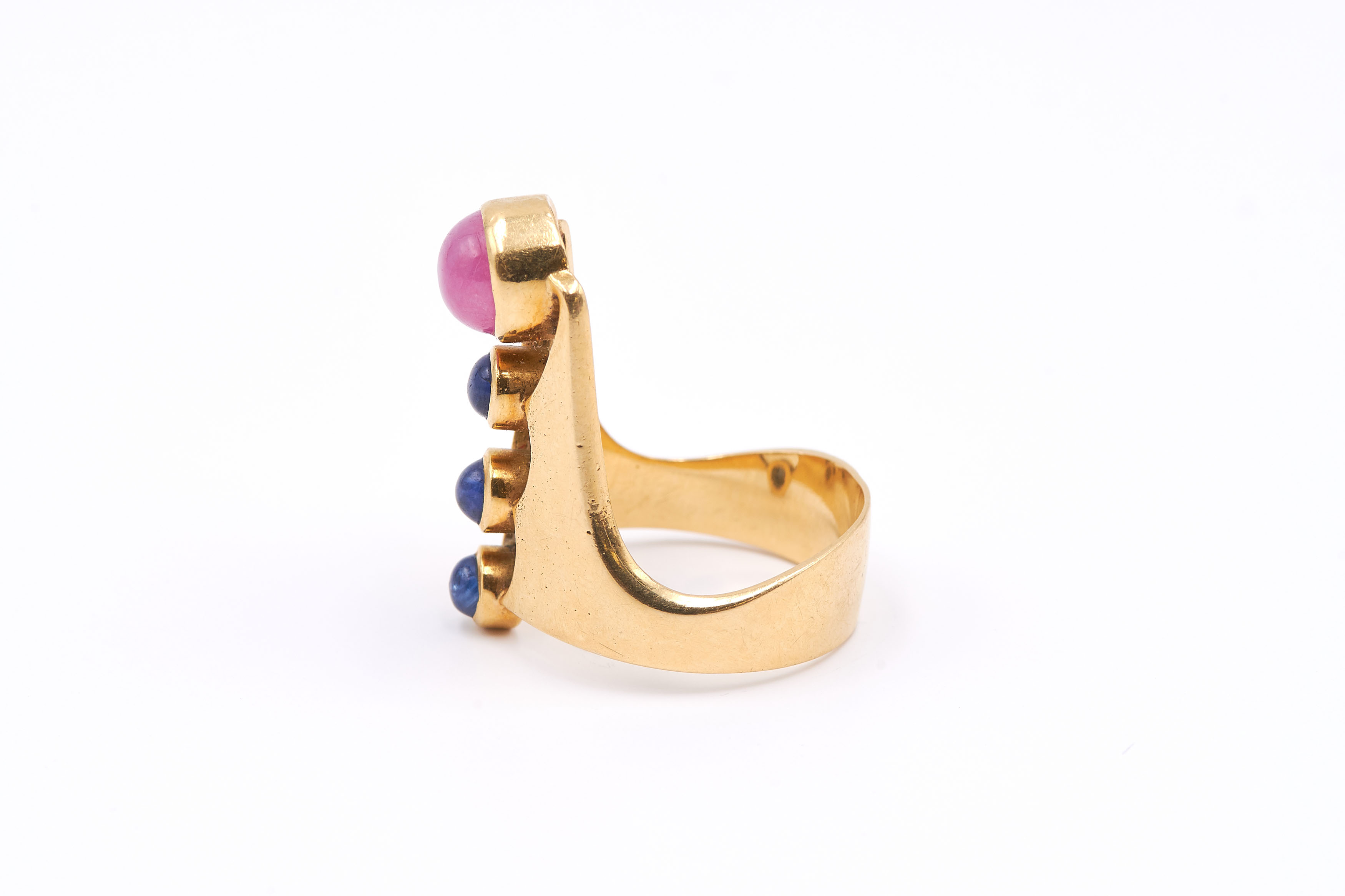 Edelsteine: 4 Farbstein-Cabochons, wohl Rubin und Saphir Ø ca. 3,5 - 6,8 mm.