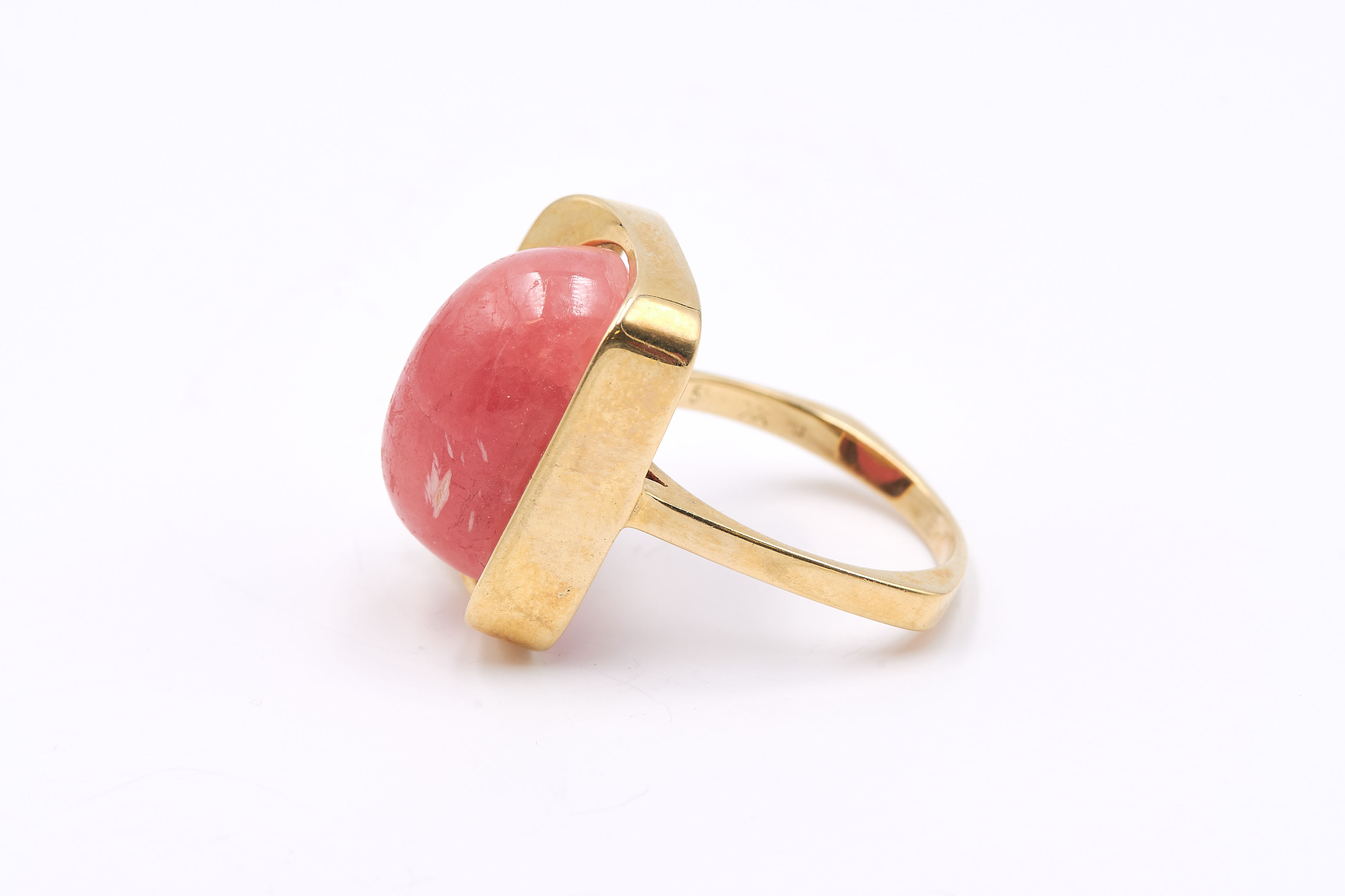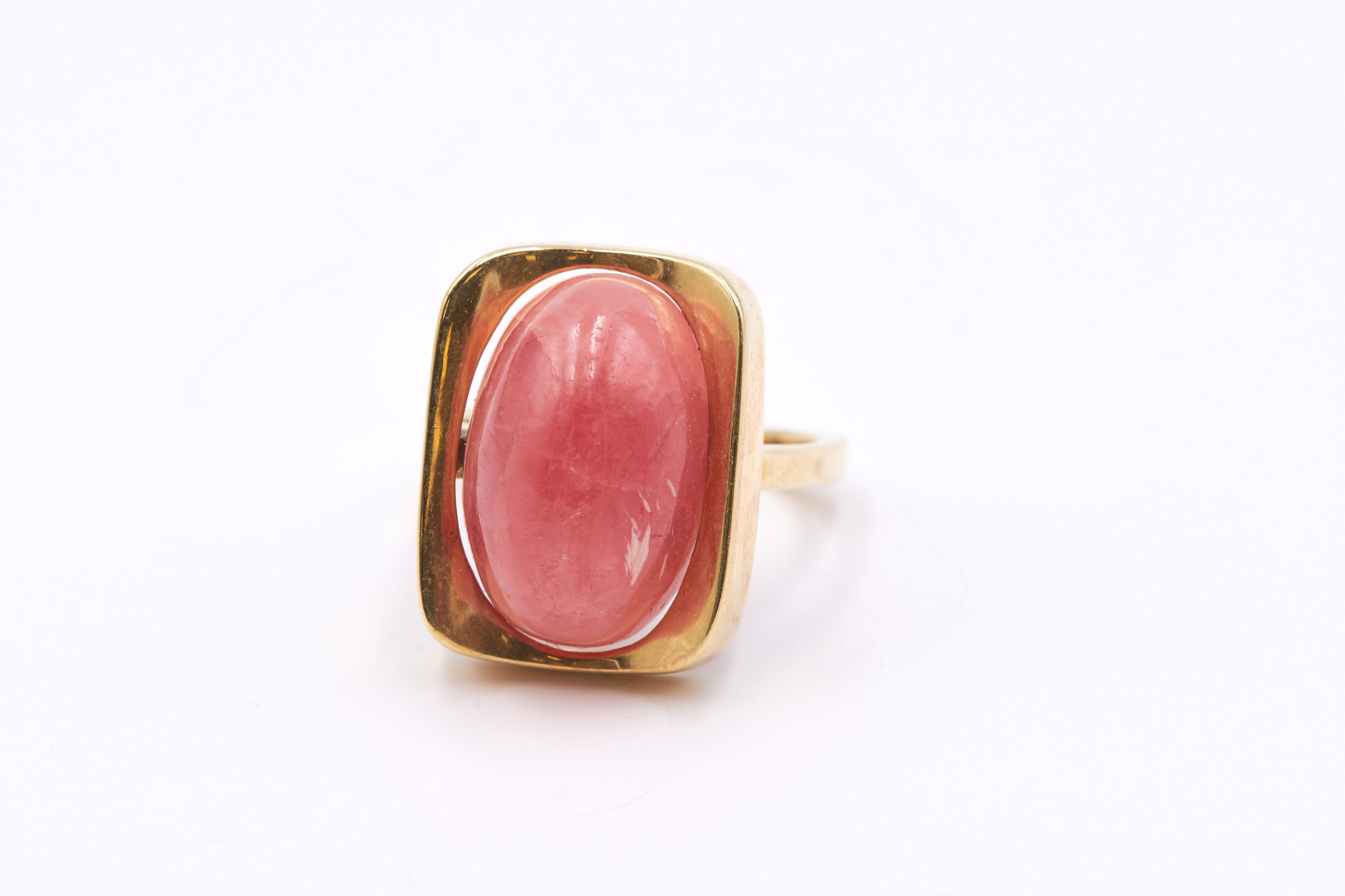 Edelsteine: 1 rosa Farbstein-Cabochon, wohl Rhodochrosit ca. 18,0 x 11,8 mm.