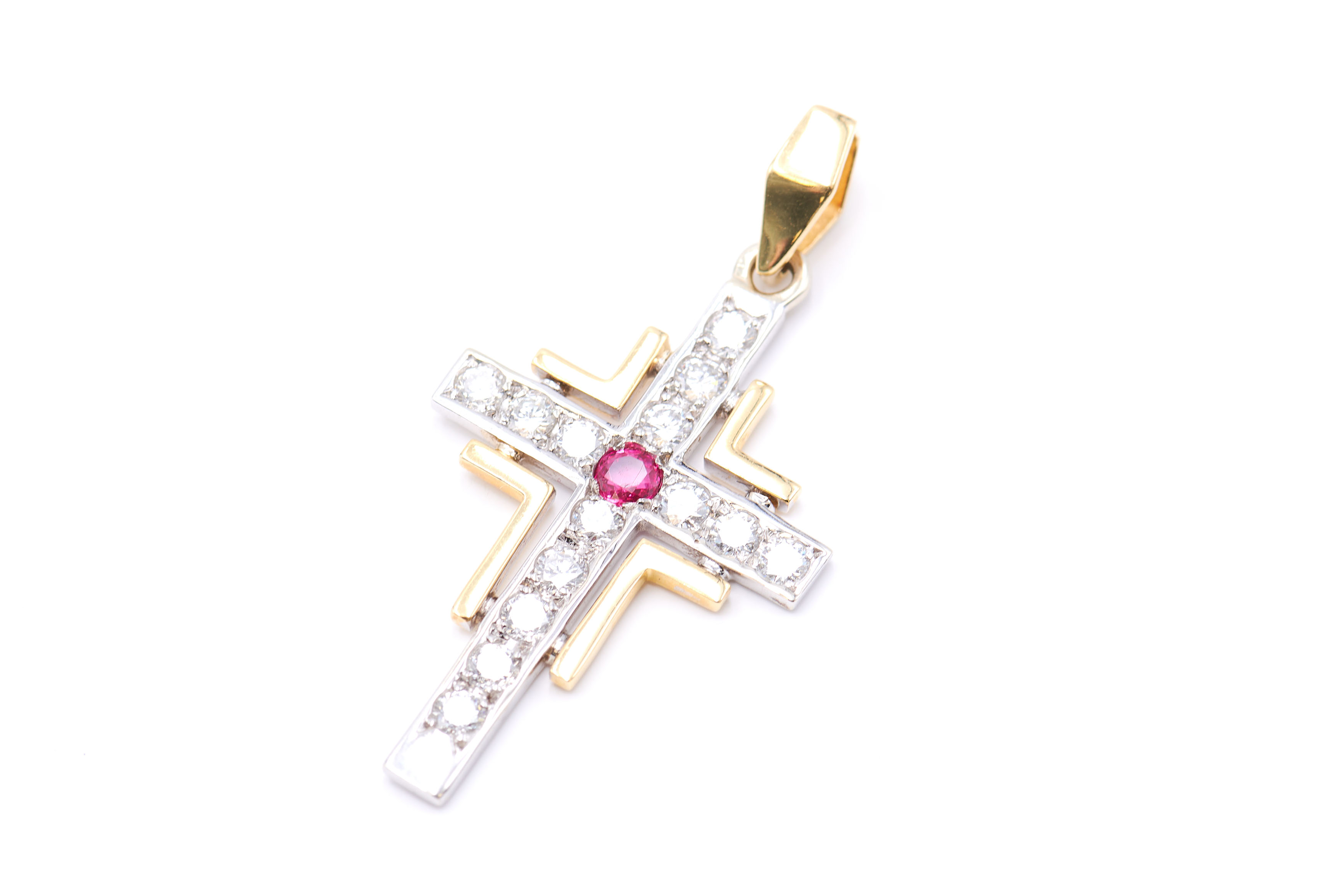 Edelsteine: 1 runder, facettierter Farbstein, wohl Rubin ca. 0,15 ct.
