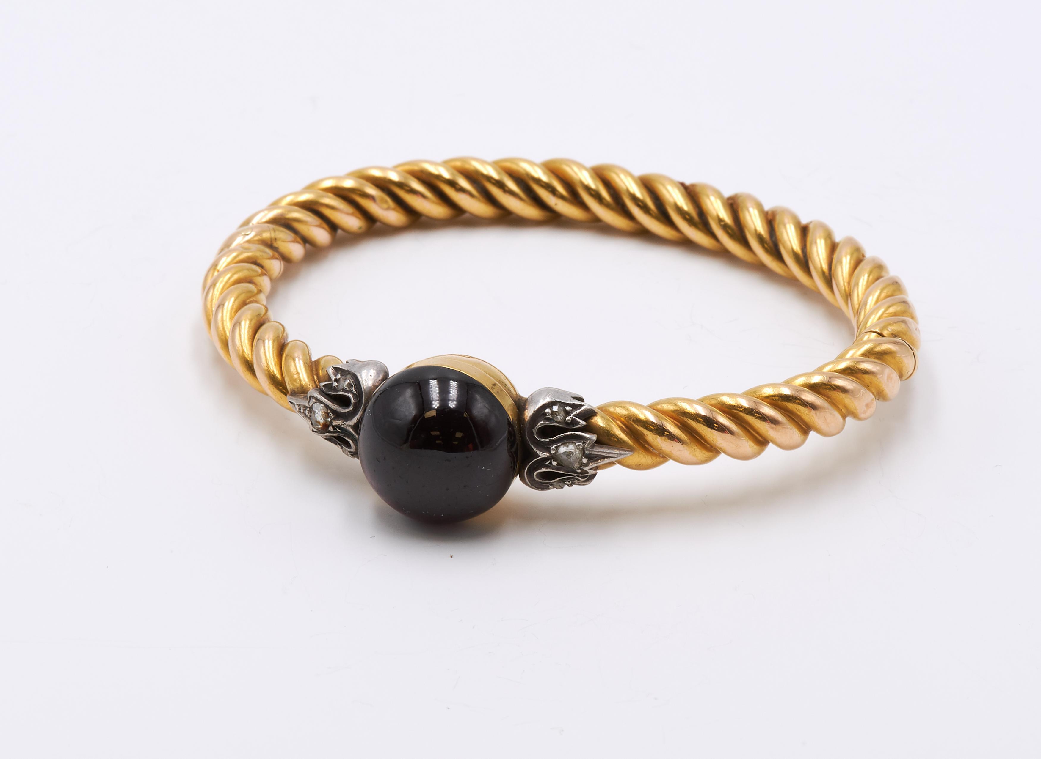 Edelsteine: 1 Granat-Cabochon Ø ca. 15,0 mm.