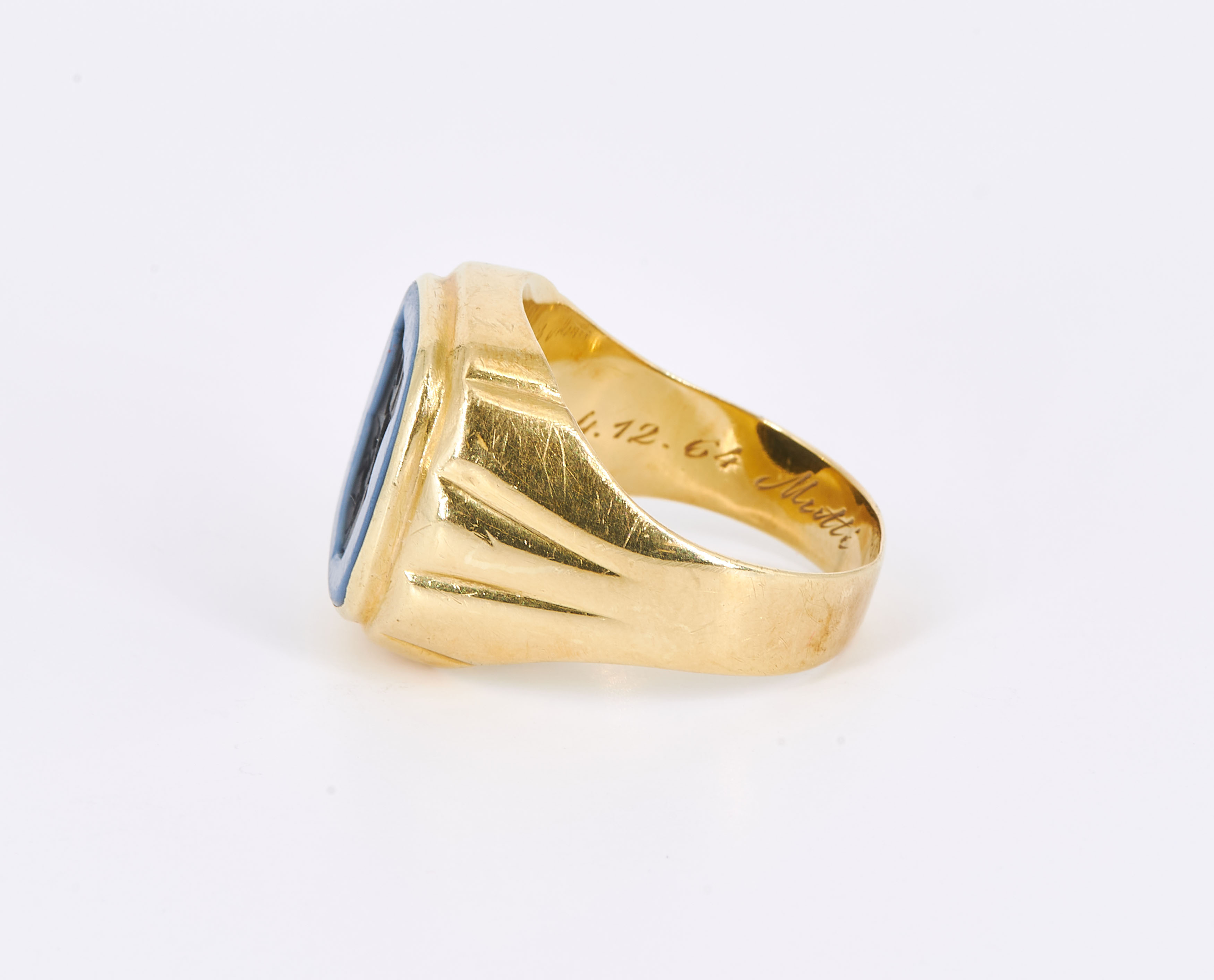 Edelsteine: 1 geschnitzter Lagenstein mit Wappen ca. 15,3 x 15,3 mm.