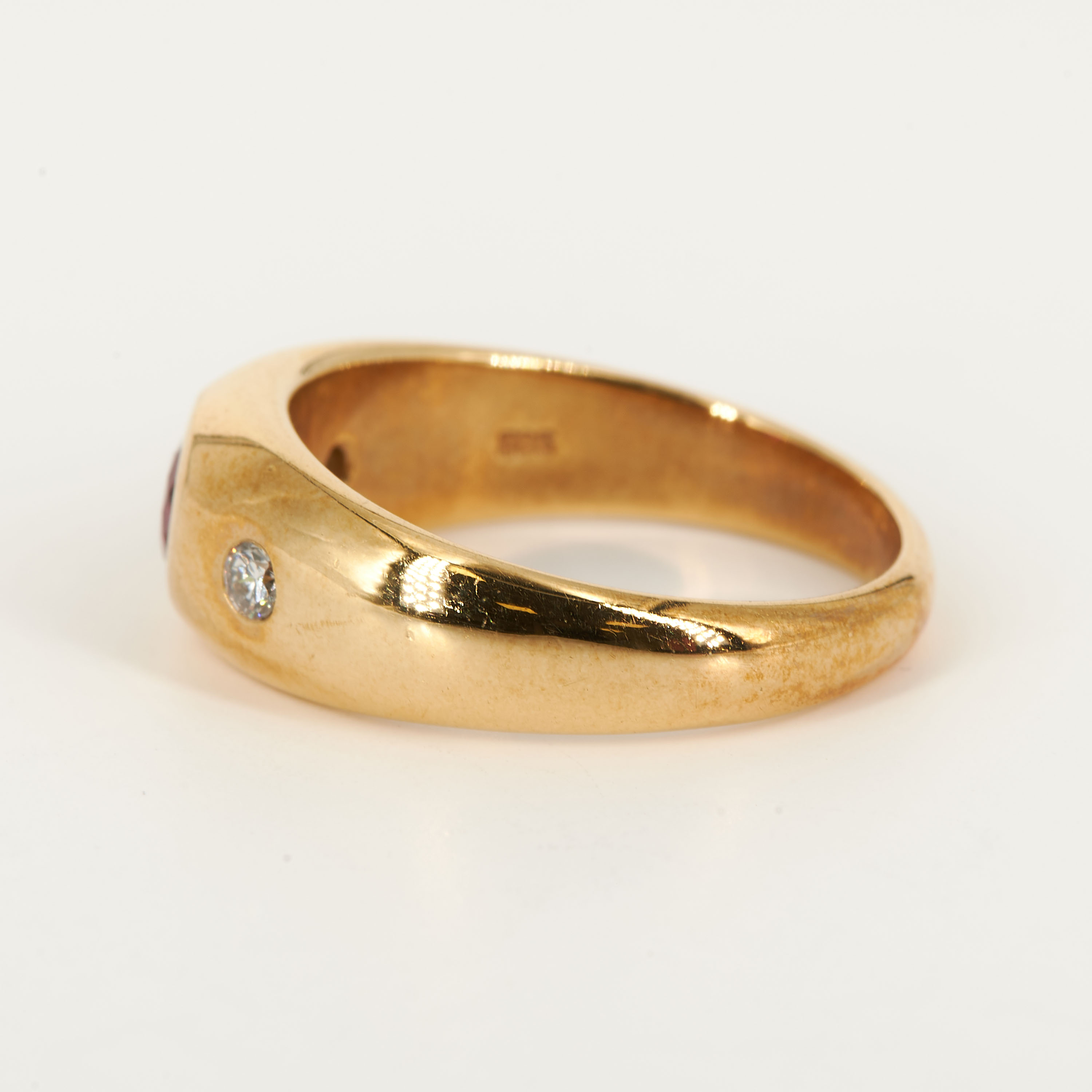 Zustand: guter Zustand, leichte Tragespuren in Form von leichten Kratzern. Rubin mit einem
