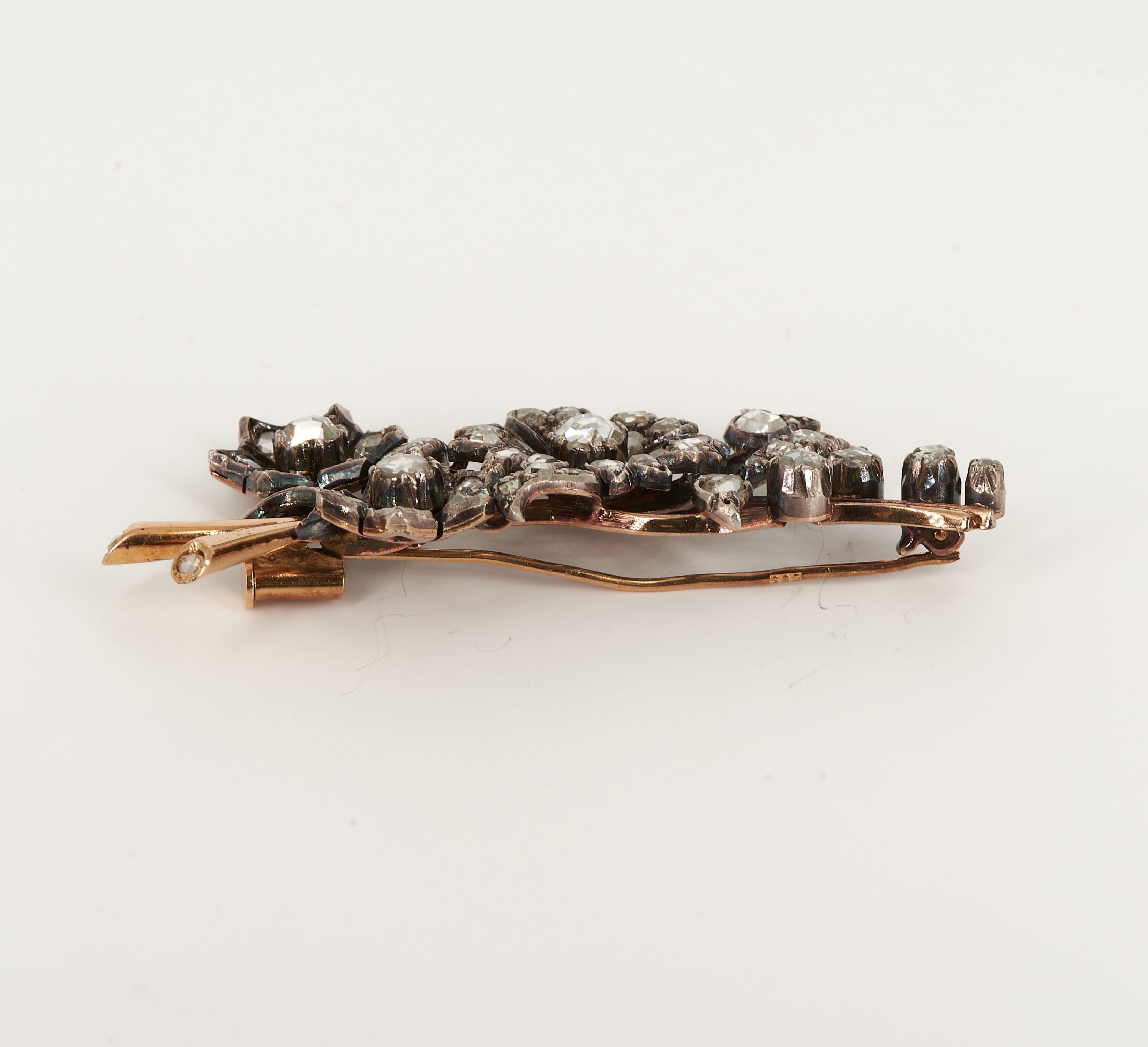 Diamanten: 59 Diamanten im Rosen-Schliff Ø ca. 0,8 - 3,8 mm.
