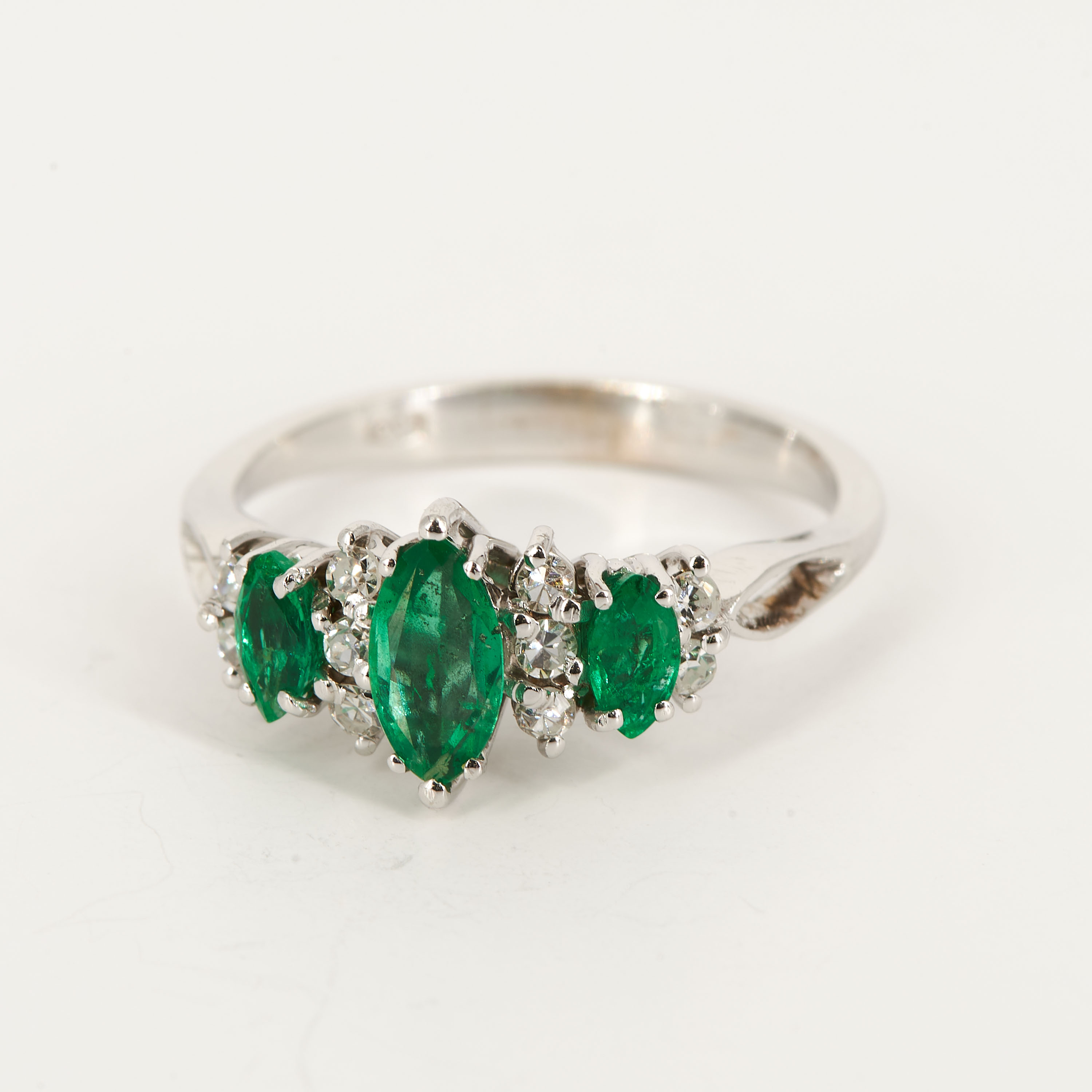 Edelsteine: 3 Smaragde im Navette-Schliff zus. ca. 0,55 ct.