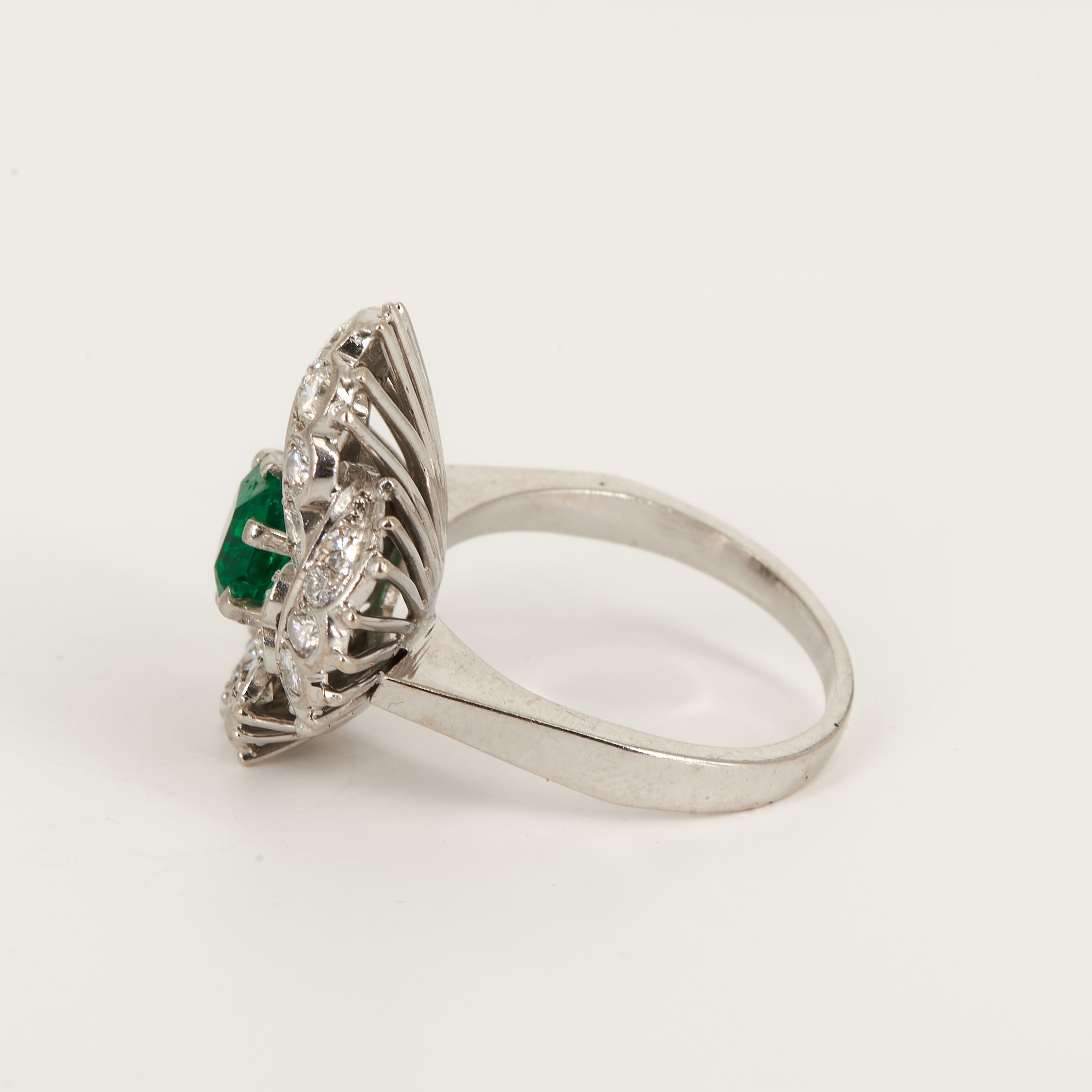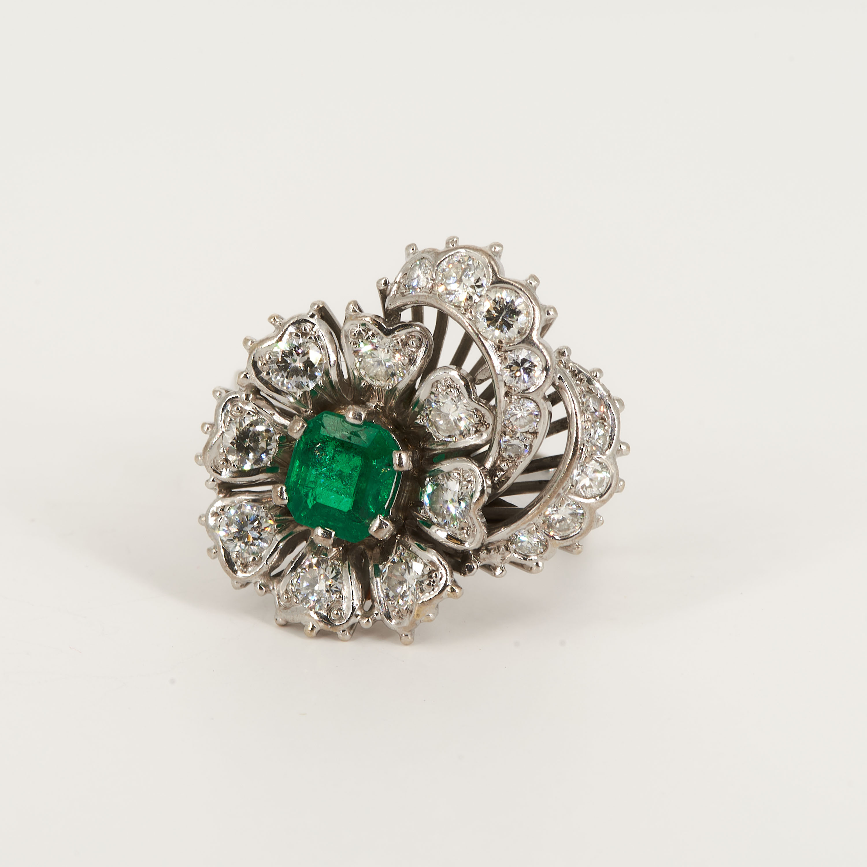 Edelsteine: 1 Smaragd im Emerald-Schliff ca. 0,76 ct, intensives Grün.