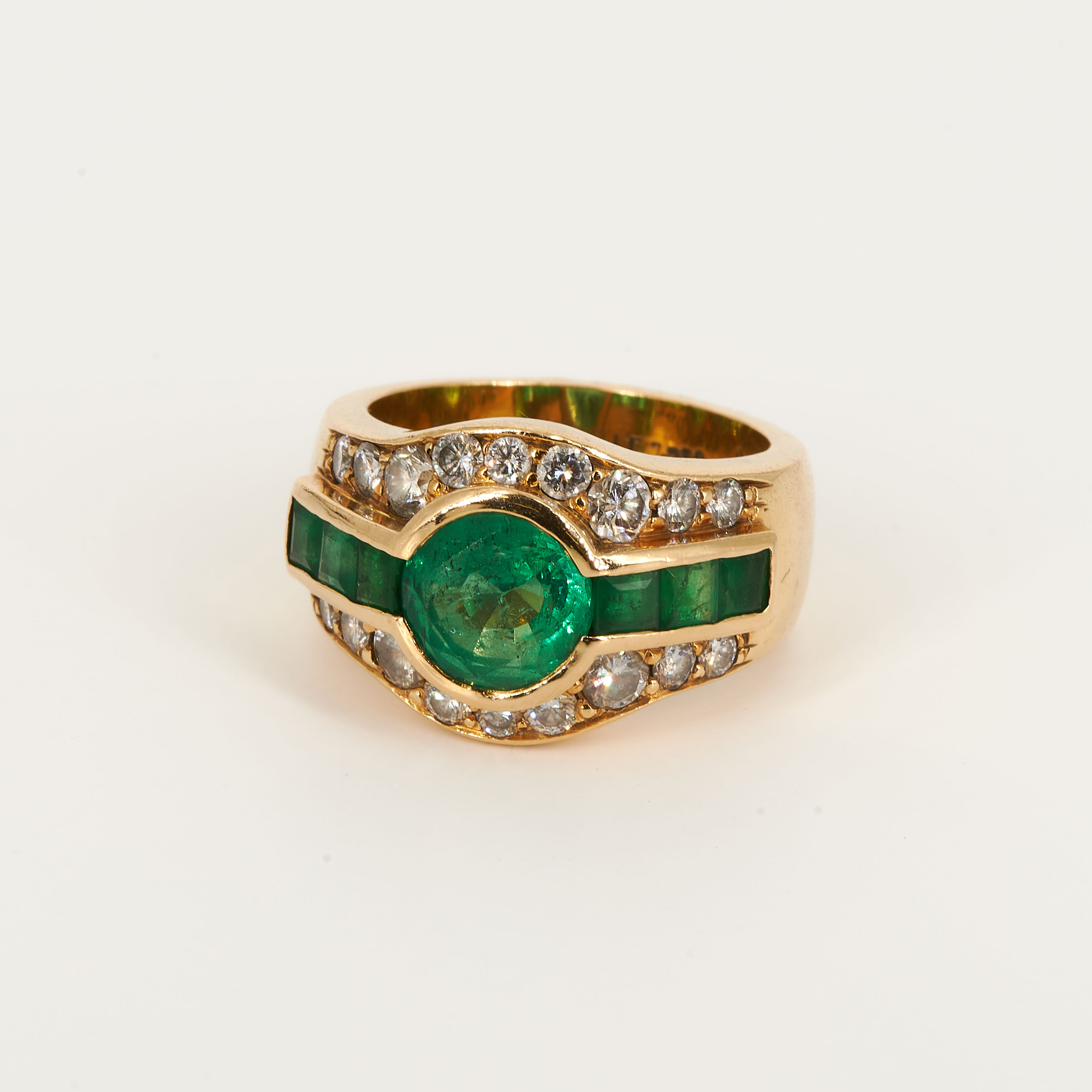 Edelsteine: 7 Smaragde im Brillant- und Carré-Schliff zus. ca. 2,50 ct.