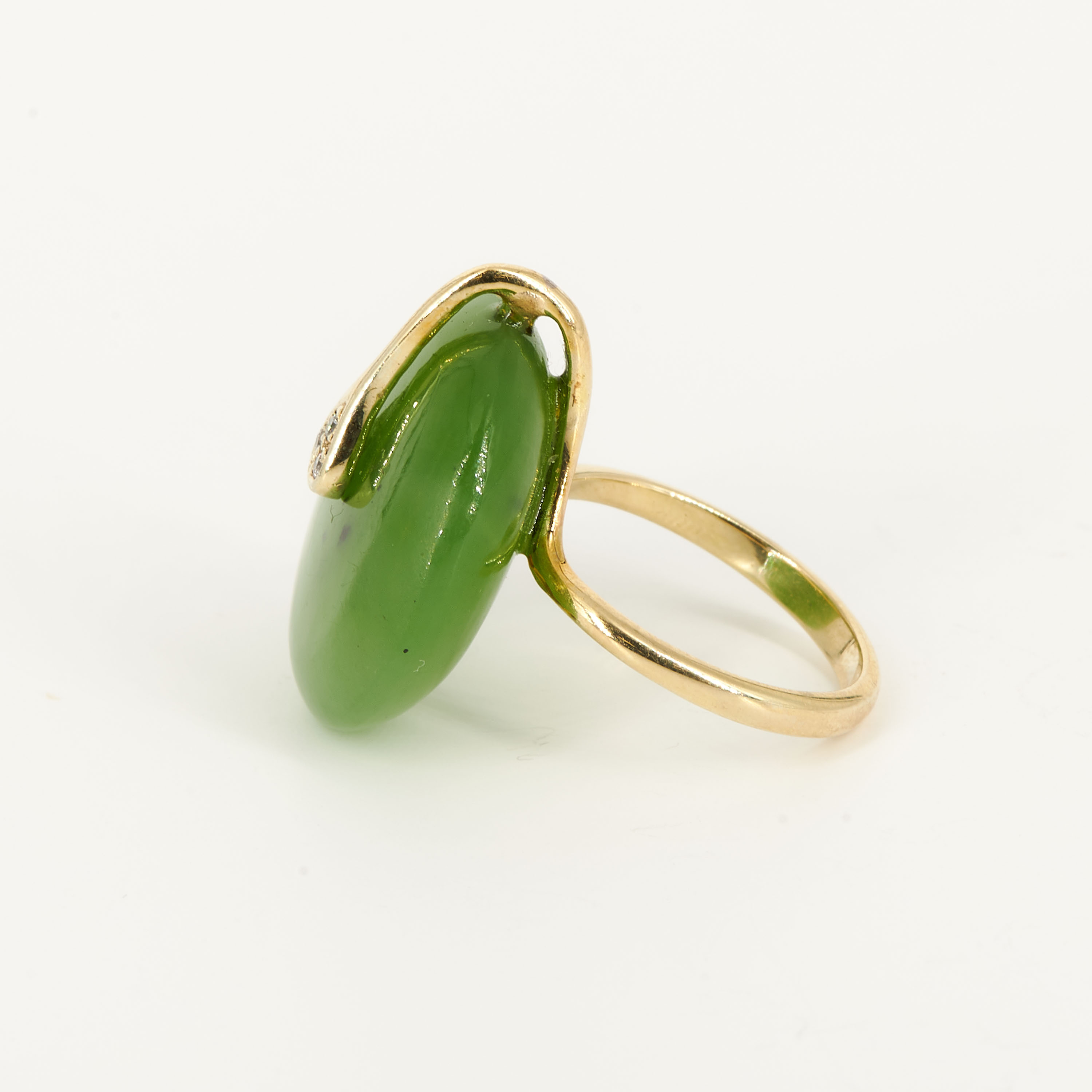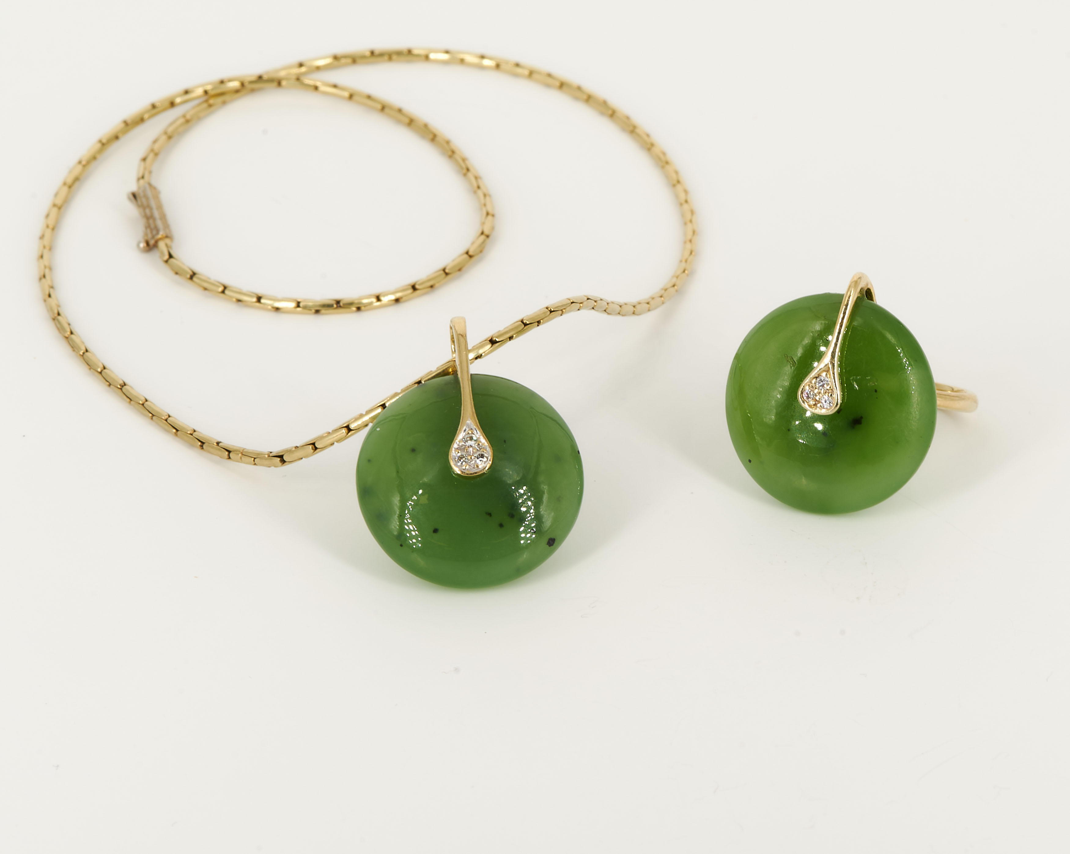 Edelsteine: 2 Nephrit-Elemente Ø ca. 22,9 - 23,2 mm, Höhe ca. 8,6 - 9,1 mm.