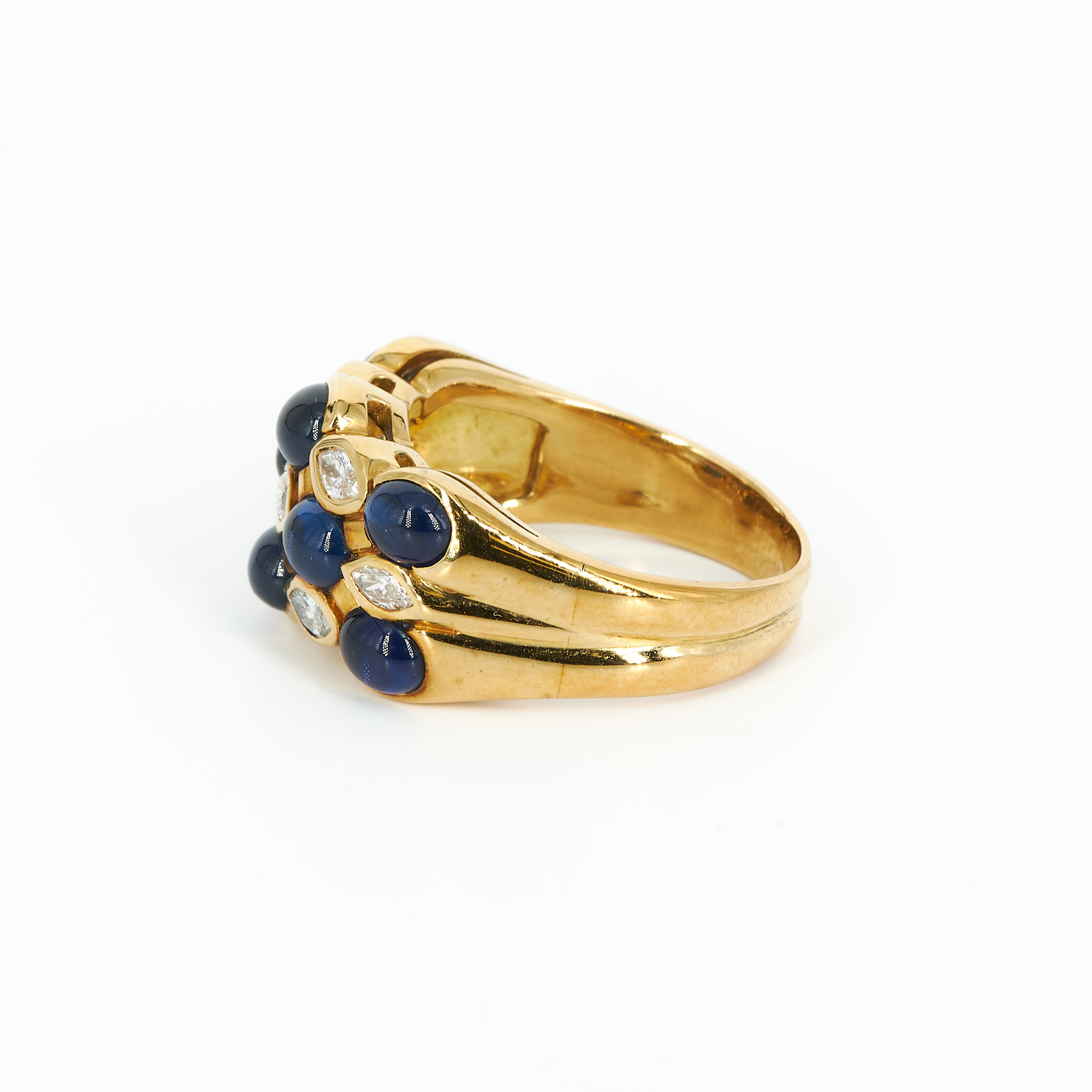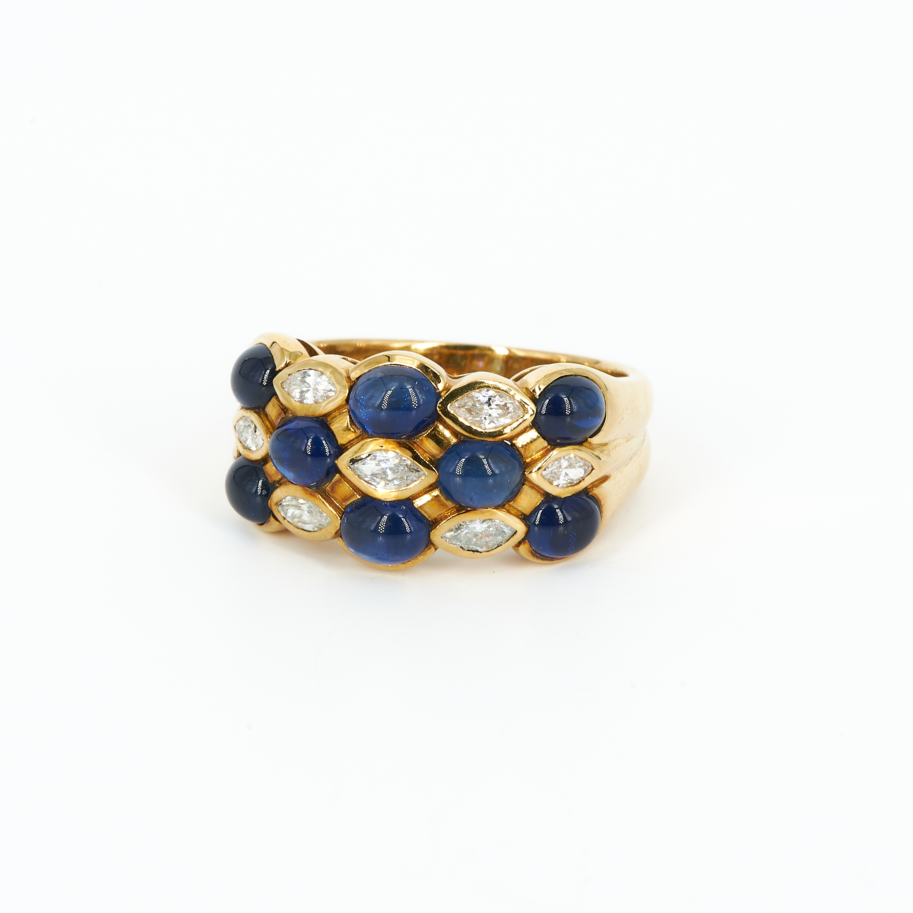 Saphir-Cabochons wurden in der Fassung verklebt. Ringschenk wurde in der Größe verändert,