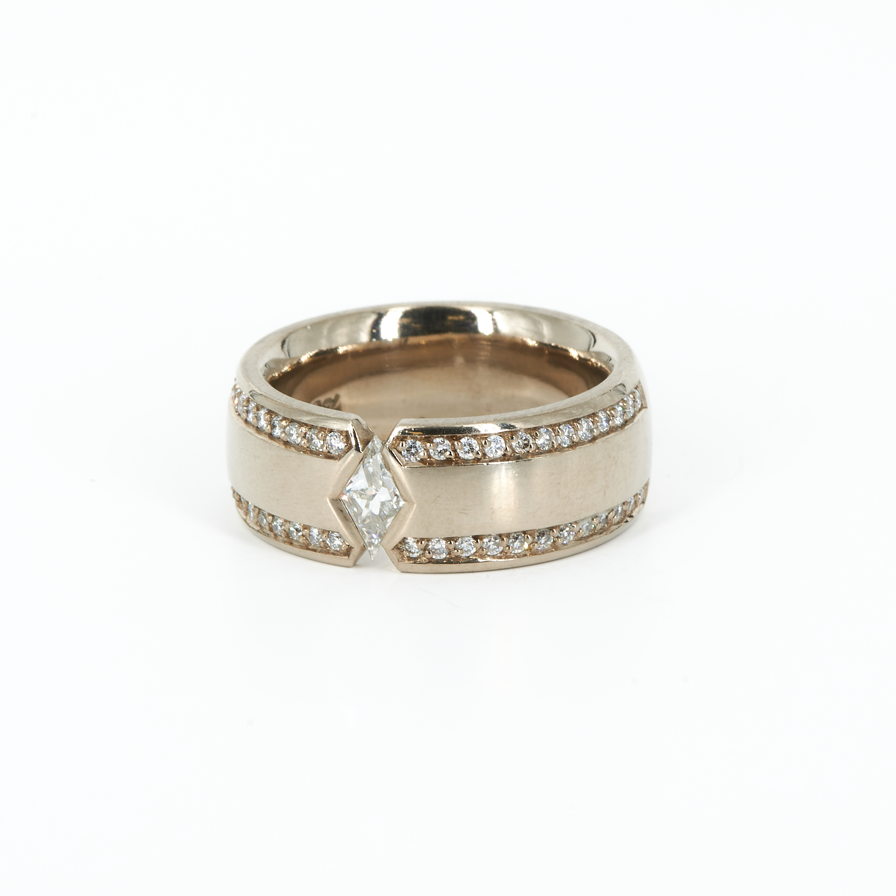 Diamanten: 49 Diamanten im Brillant- und Rauten-Schliff zus. ca. 0,71 ct., G/VS.