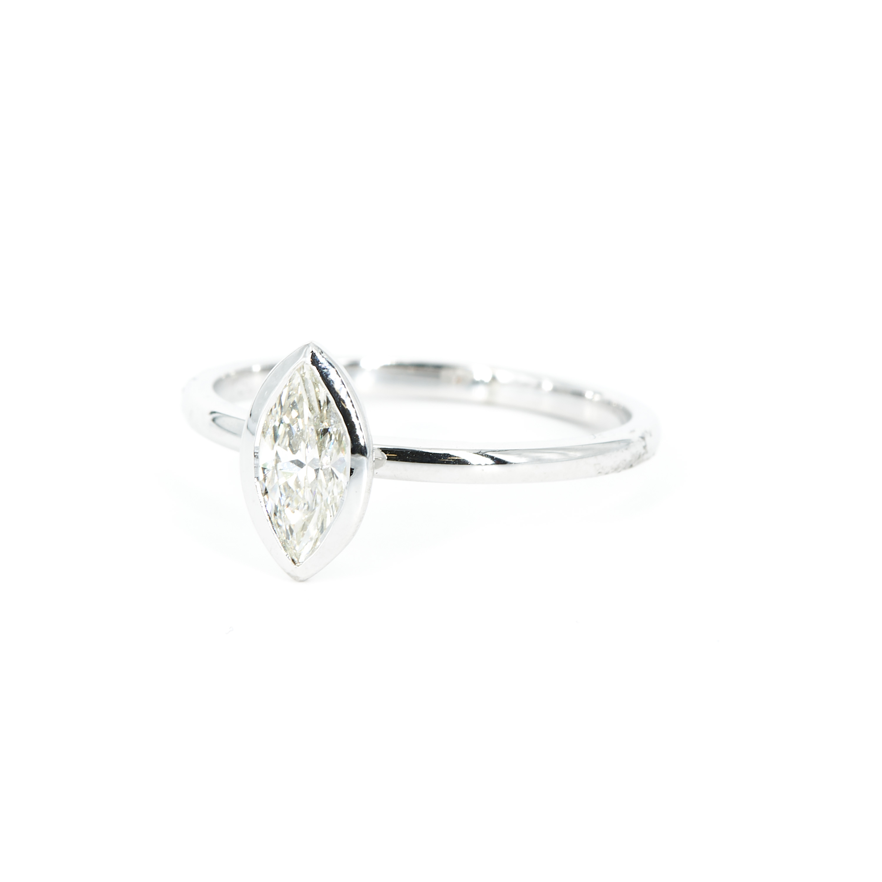 Diamanten: 1 Diamant im Navette-Schliff ca. 0,45 ct., H/P.