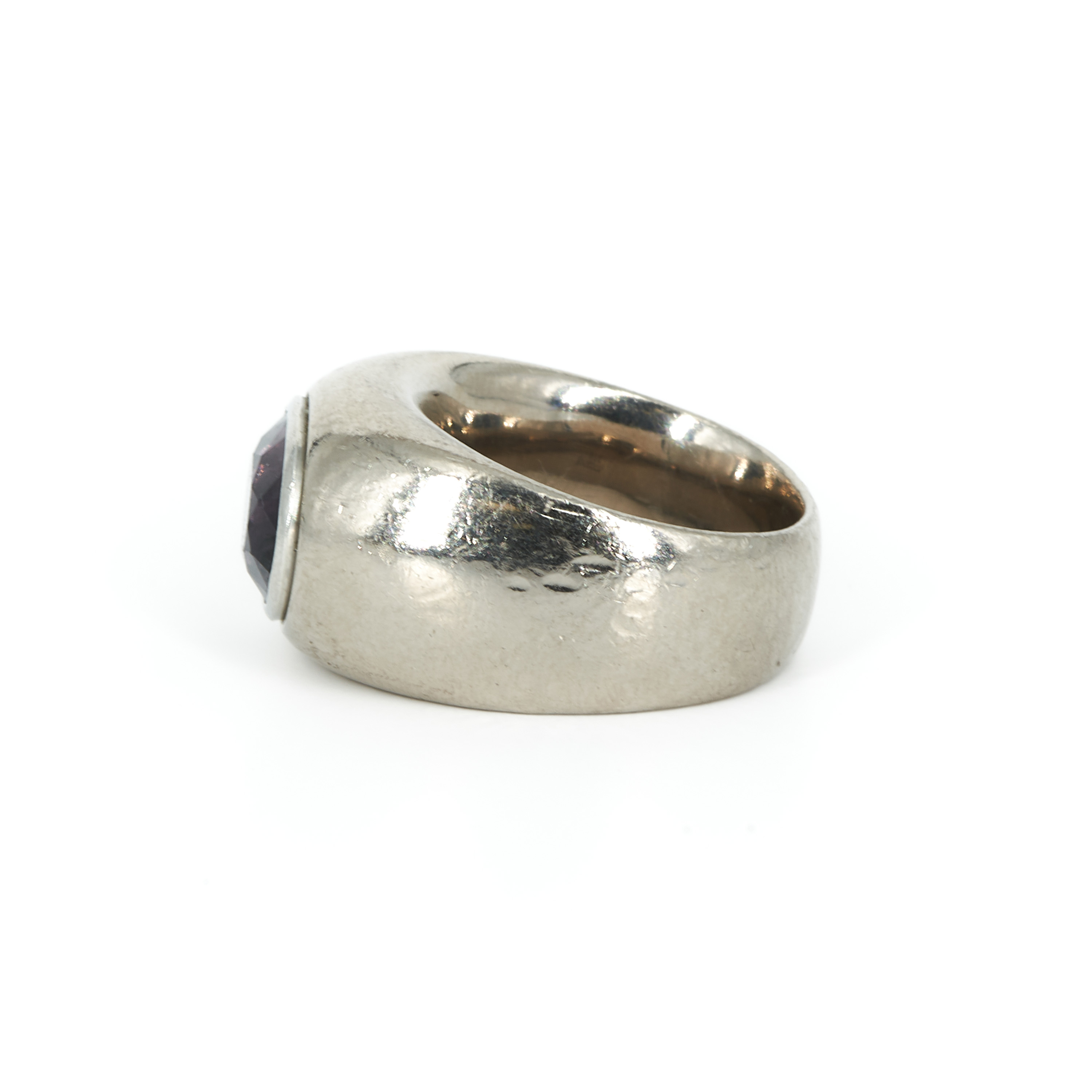 Edelsteine: 1 violetter Farbstein im Oval-Schliff, wohl Spinell ca. 11,8 x 9,4 mm.
