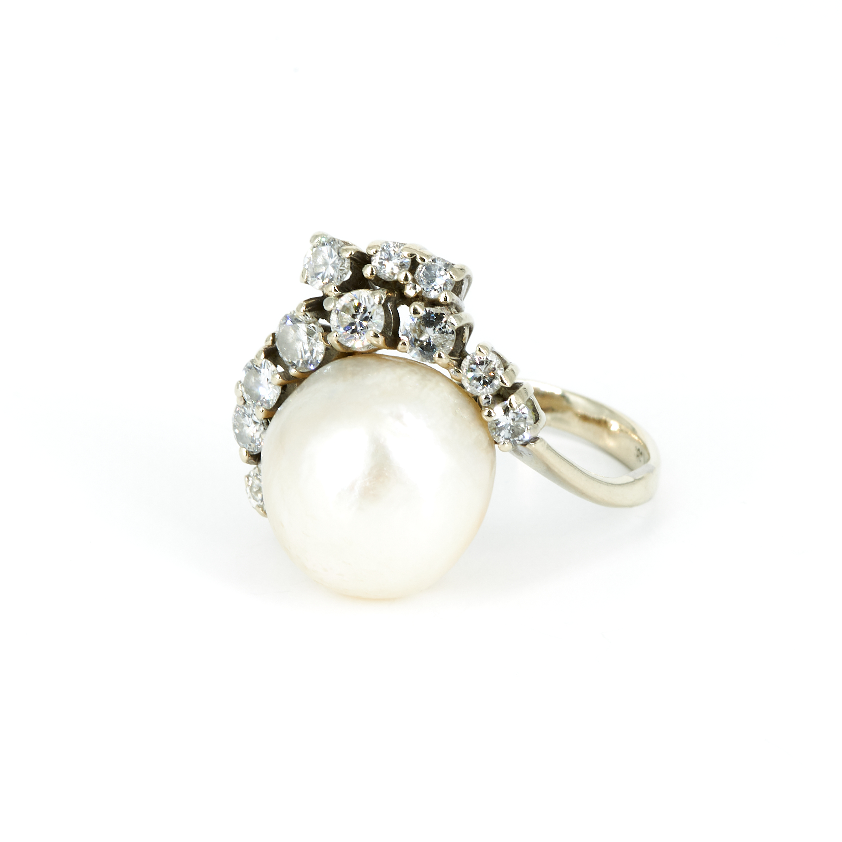 Org. Substanzen: 1 Mabé-Perle Ø ca. 13,6 - 14,0 mm, weiß.