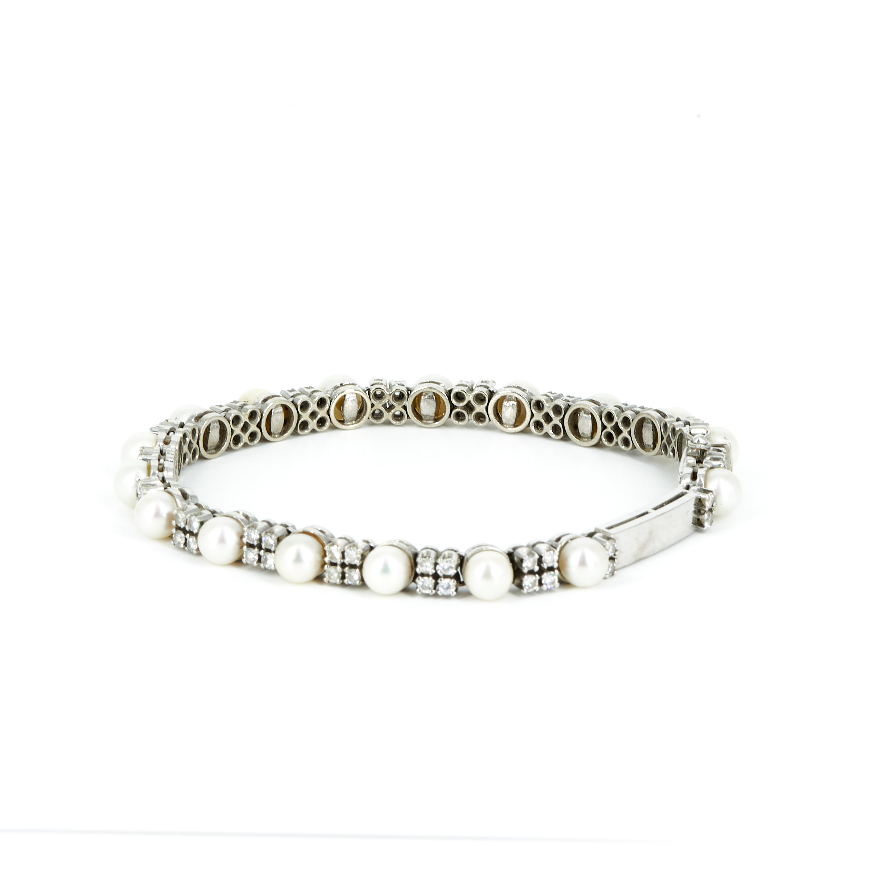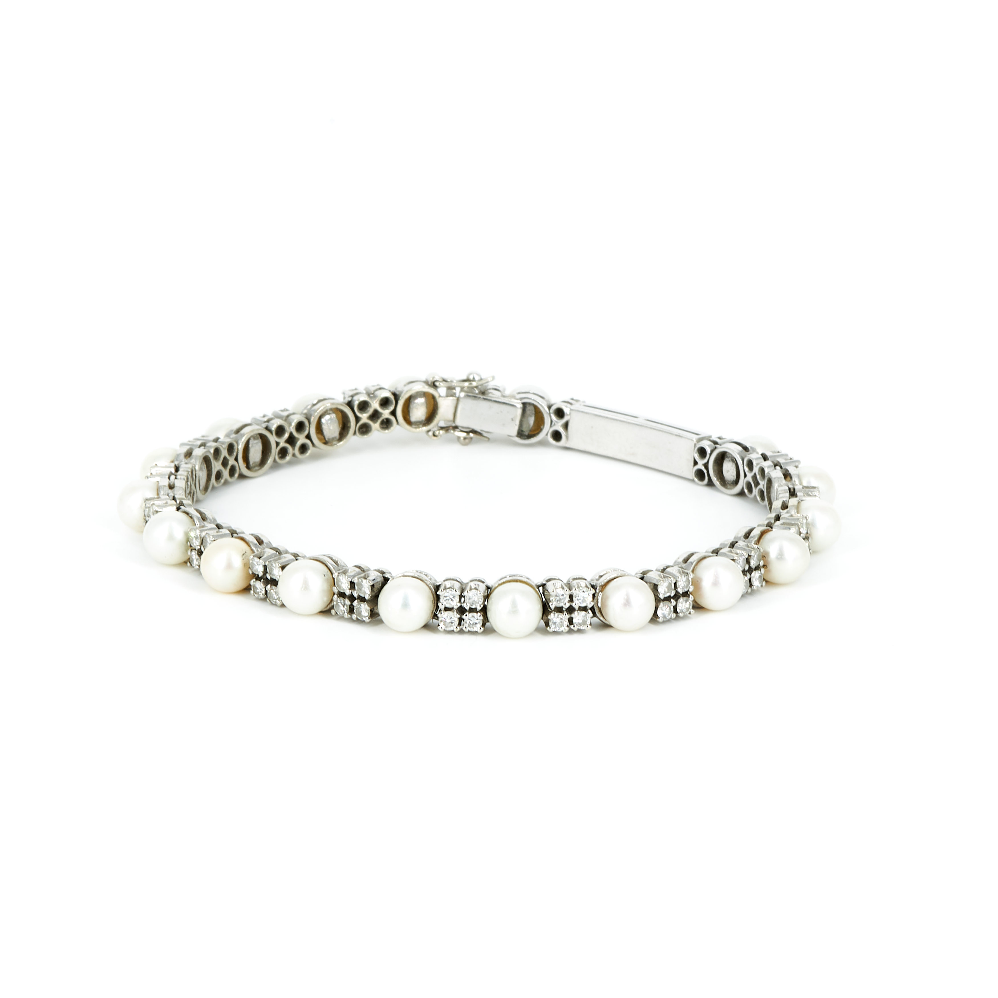 Org. Substanzen: 17 Akoya-Zuchtperlen Ø ca. 5,5 - 5,6 mm, silber-weiß.