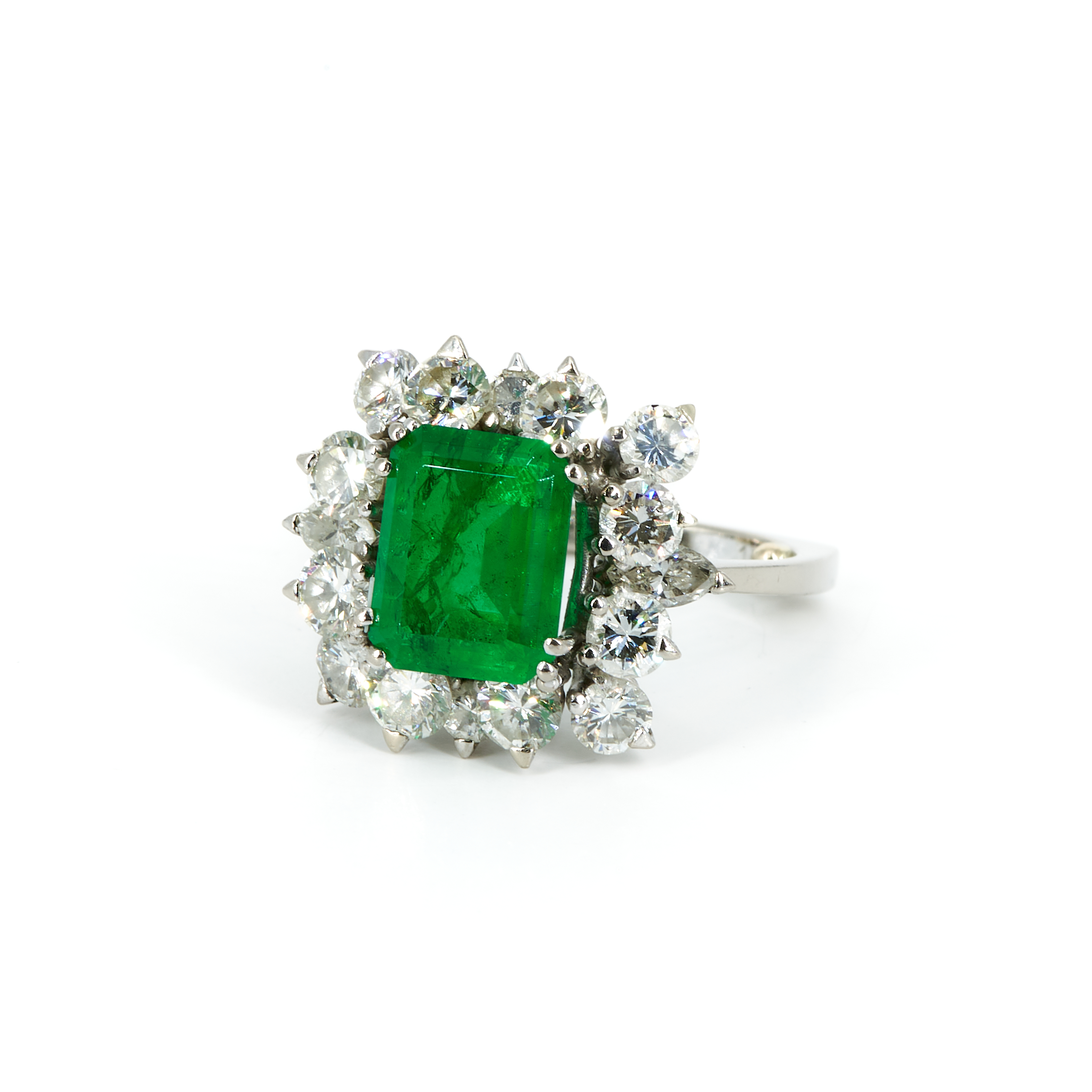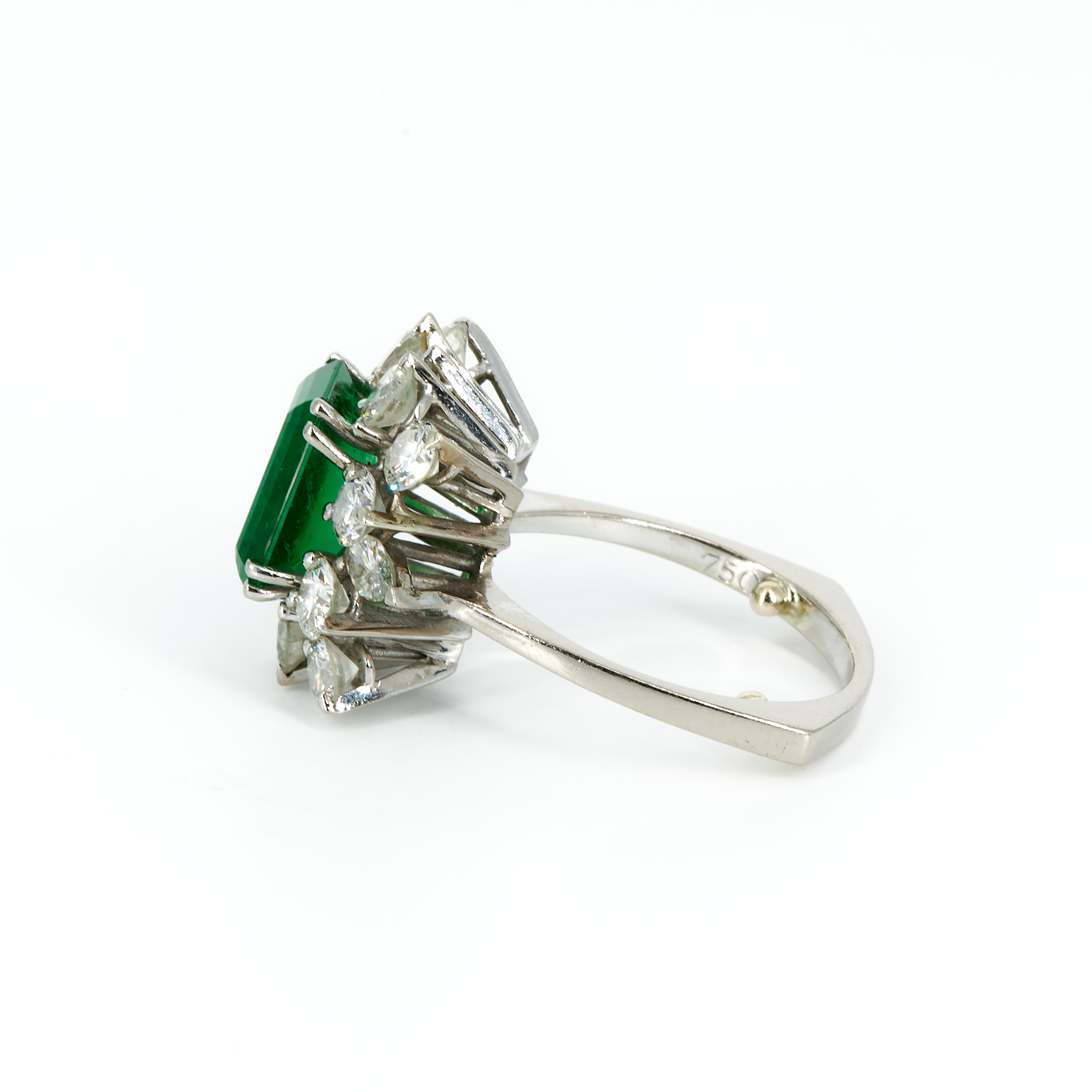 Edelsteine: 1 Farbstein im Emerald-Schliff, wohl Smaragd ca. 2,8 ct.